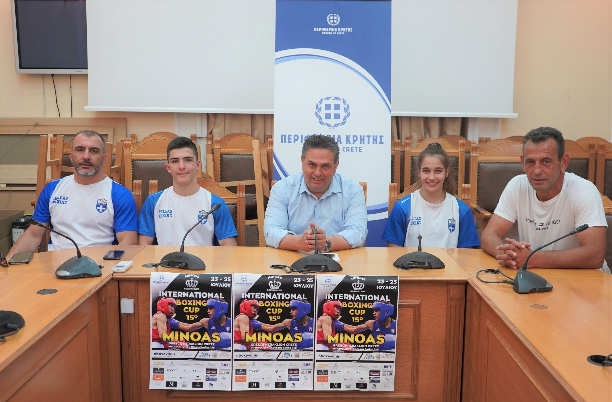 Στη σημερινή συνέντευξη τύπου στη Περιφέρεια Κρήτης για το 15ο διεθνές τουρνουά πυγμαχίας “ΜΙΝOAS CUP”, παραβρέθηκαν ο Αντιπεριφερειάρχης Αθλητισμού, Πρόληψης και Κινητών Μονάδων Γιώργος Πιτσούλης, οι προπονητές της Εθνικής μας Ομάδας Πυγμαχίας Ανδρέας Γιαννακόπουλος και Νίκος Πλέας, η πρωταθλήτρια Ευρώπης νεανίδων Αντωνία Γιαννακοπούλου και ο πρωταθλητής πυγμάχος νεανίδων επίσης στην εθνική μας ομάδα Γιώργος Πλέας.