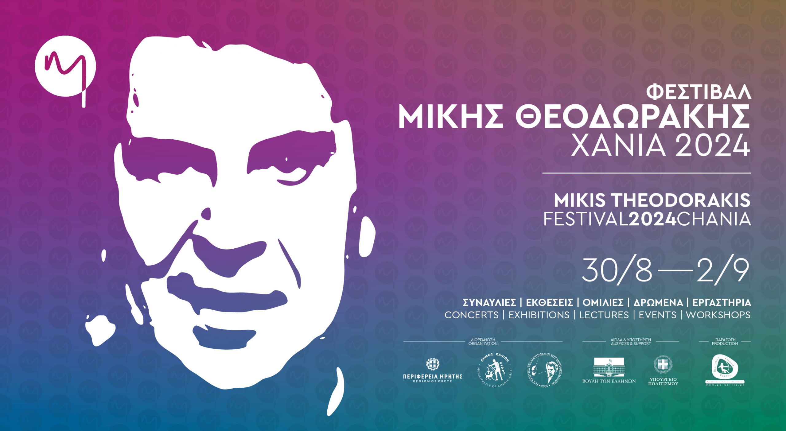 Με κεντρικό σημείο αναφοράς το Πολιτικό Μνημόσυνο, το Φεστιβάλ Μίκης Θεοδωράκης πραγματοποιείται και φέτος από τις 30 Αυγούστου 2024 έως και τις 2 Σεπτεμβρίου 2024, στα Χανιά, με διοργανωτές την Περιφέρεια Κρήτης, το Δήμο Χανίων και τον Παγκρήτιο Σύλλογο Φίλων Μίκη Θεοδωράκη.