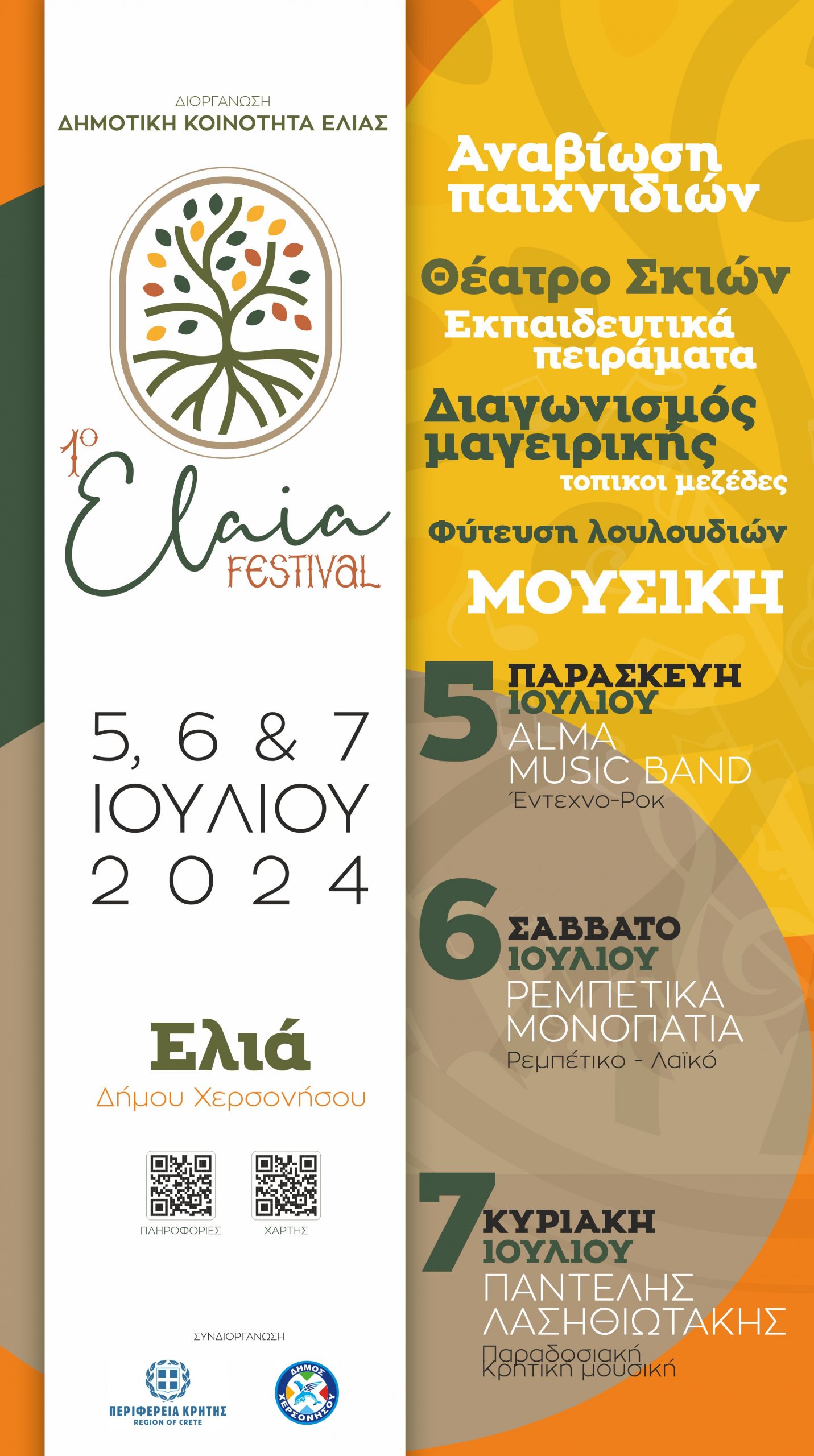 1ο ΦΕΣΤΙΒΑΛ ΕΛΙΑΣ – ΠΑΡΑΣΚΕΥΗ 5 ΙΟΥΛΙΟΥ ΕΩΣ ΚΥΡΙΑΚΗ 7 ΙΟΥΛΙΟΥ 2024 ΜΕ ΤΗΝ ΣΤΉΡΙΞΗ ΤΗΣ ΠΕΡΙΦΕΡΕΙΑΣ ΚΡΗΤΗΣ