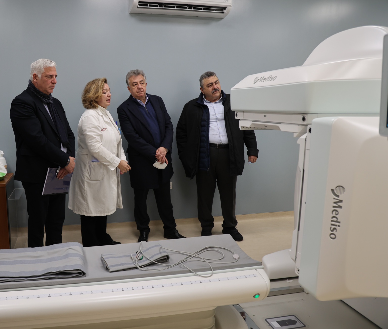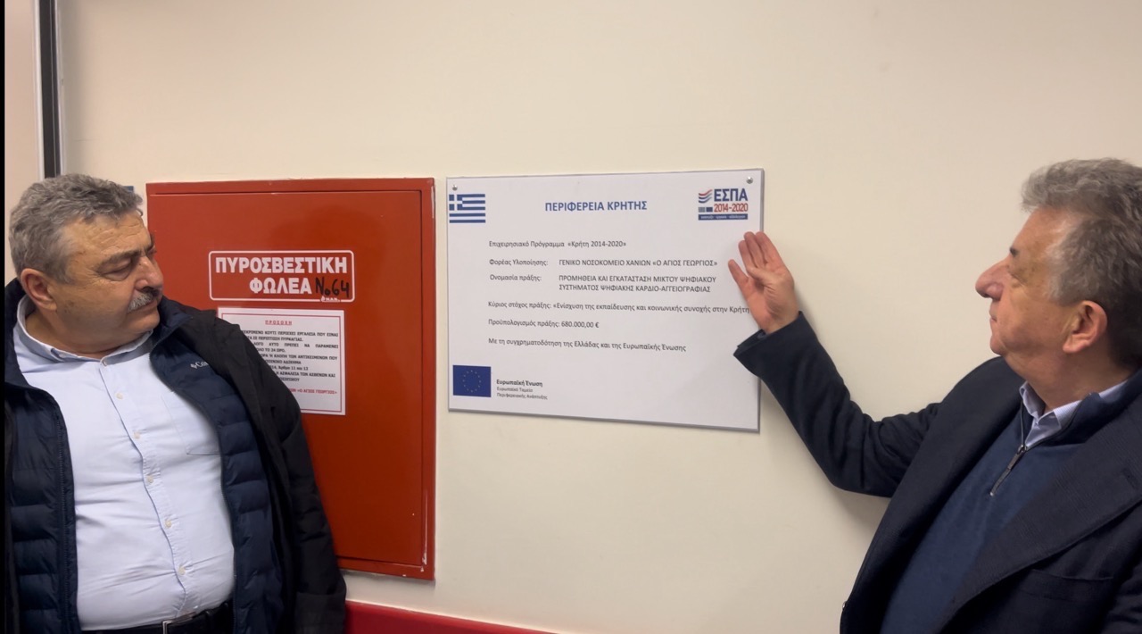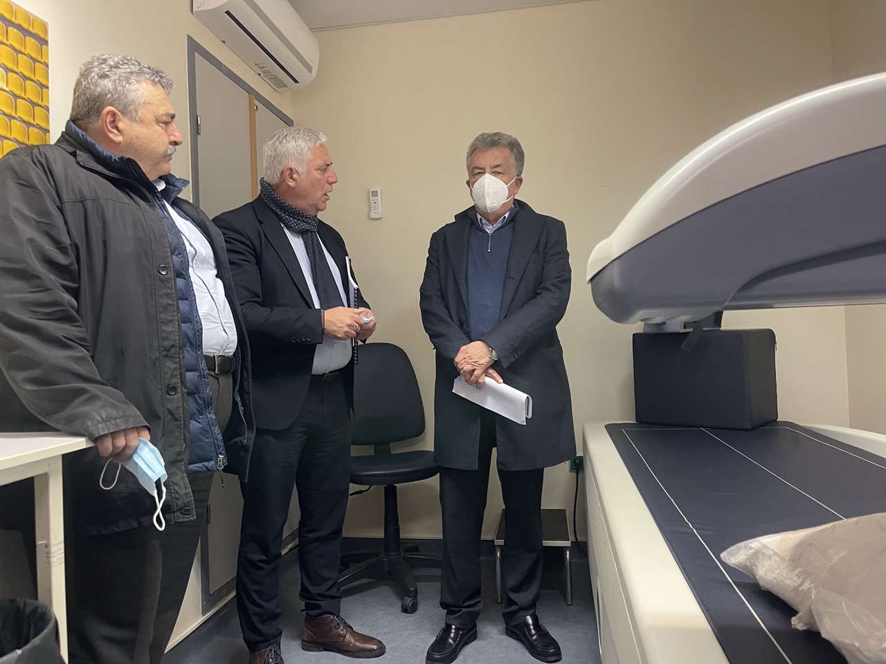 Το νοσοκομείο Χανίων επισκέφθηκε σήμερα ο Περιφερειάρχης Κρήτης Σταύρος Αρναουτάκης μαζί με τον Αντιπεριφερειάρχη Χανίων Νίκο Καλογερή και ξεναγήθηκαν από τον Διοικητή του ιδρύματος Γιώργο Μπέα στον ψηφιακό στεφανιογράφο και τη νέα Γάμα κάμερα, μηχανήματα που αναβαθμίζουν σε πολύ υψηλό επίπεδο τις παρεχόμενες υπηρεσίες στο νοσοκομείο Χανίων και συνδράμουν στην εξυπηρέτηση των πολιτών χωρίς να χρειαστεί να μετακινηθούν για σημαντικά ιατρικά ζητήματα όπως η εμφύτευση βηματοδότη.