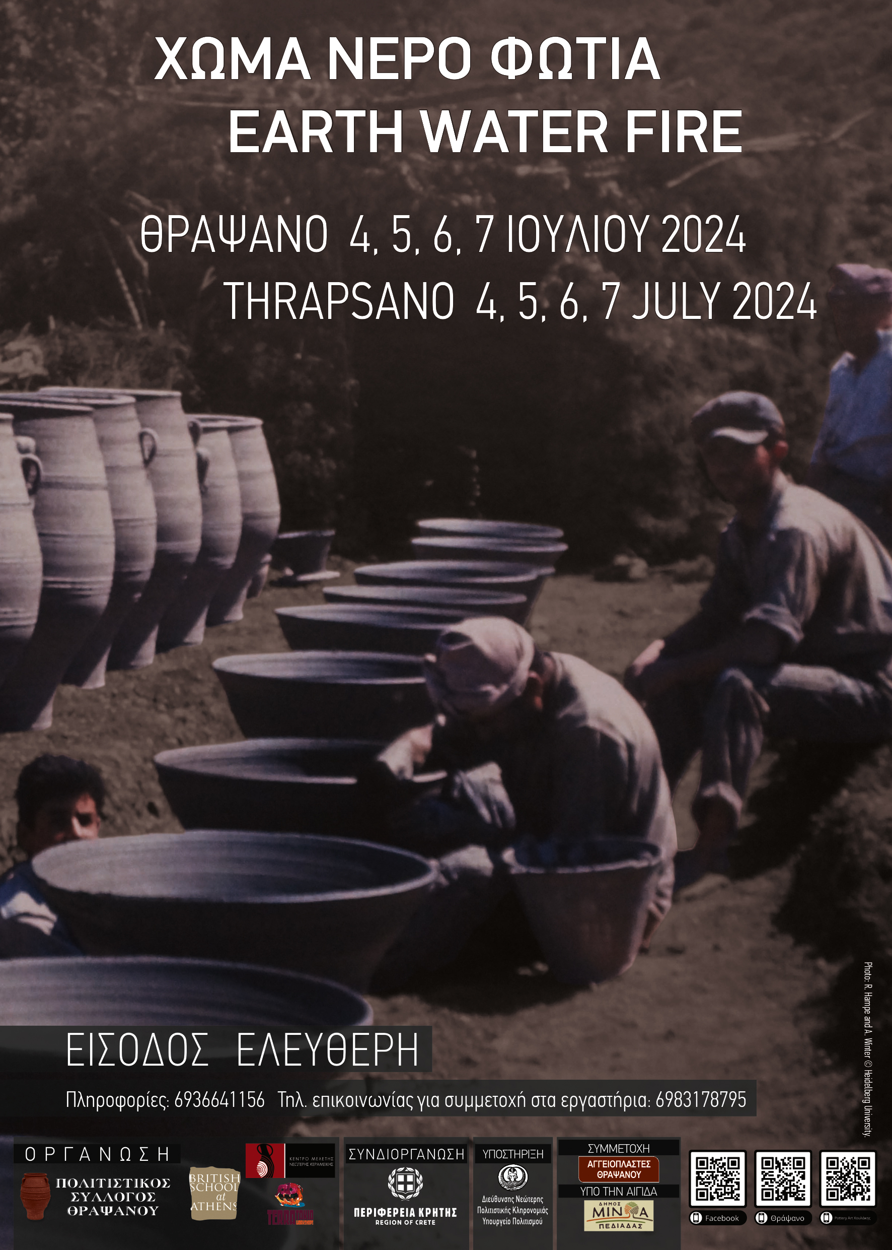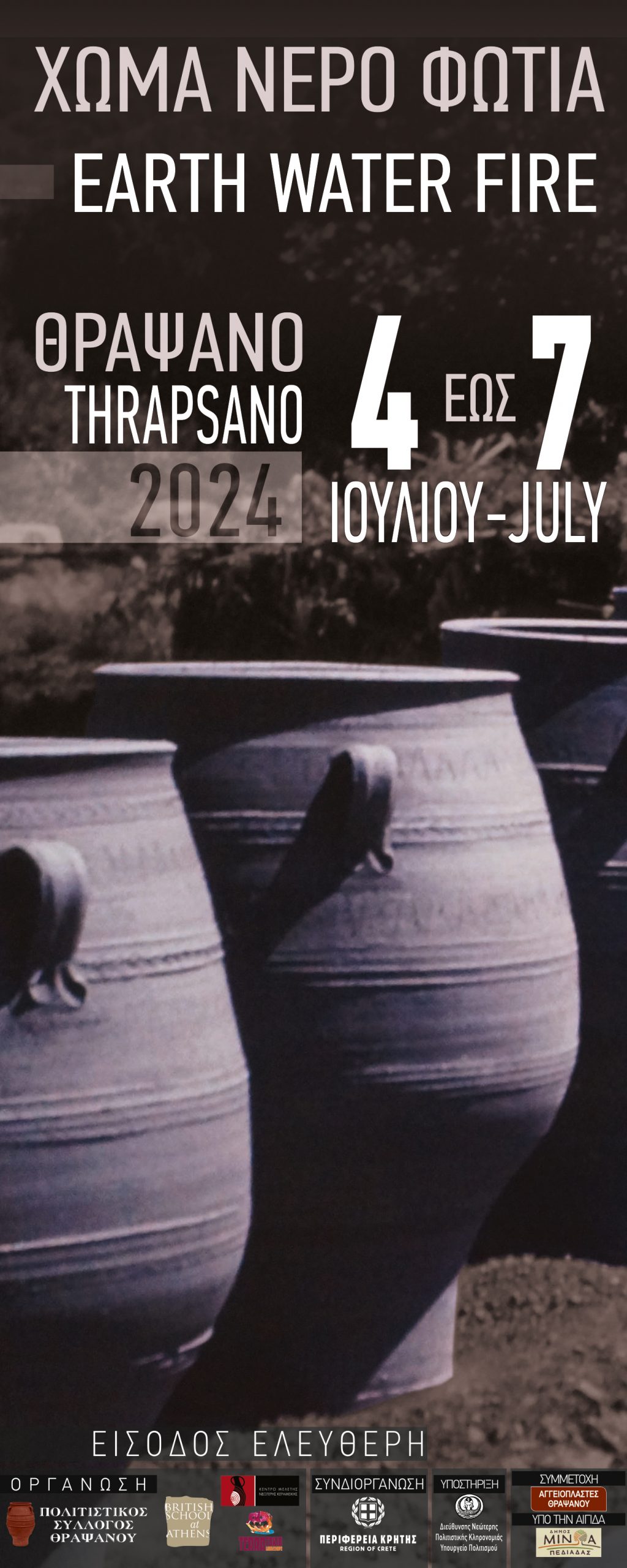 Ο Πολιτιστικός Σύλλογος Θραψανού σε συνεργασία με τη Βρετανική Σχολή Αθηνών, το Κέντρο Μελέτης Νεώτερης Κεραμεικής , την υποστήριξη της ΔΗΝΕΠΟΚ (Δ/νση Νεώτερης Πολιτιστικής Κληρονομιάς) του Υπουργείου Πολιτισμού τη συμμετοχή ιτων Αγγειοπλαστών του Θραψανού, διοργανώνει σειρά πολιτιστικών εκδηλώσεων εστιασμένων στην Κρητική παραδοσιακή κεραμική και τον πολιτισμό της Κρήτης , με την στήριξη της Περιφέρειας Κρήτης και την αιγίδα του Δήμου Μινώα Πεδιάδας