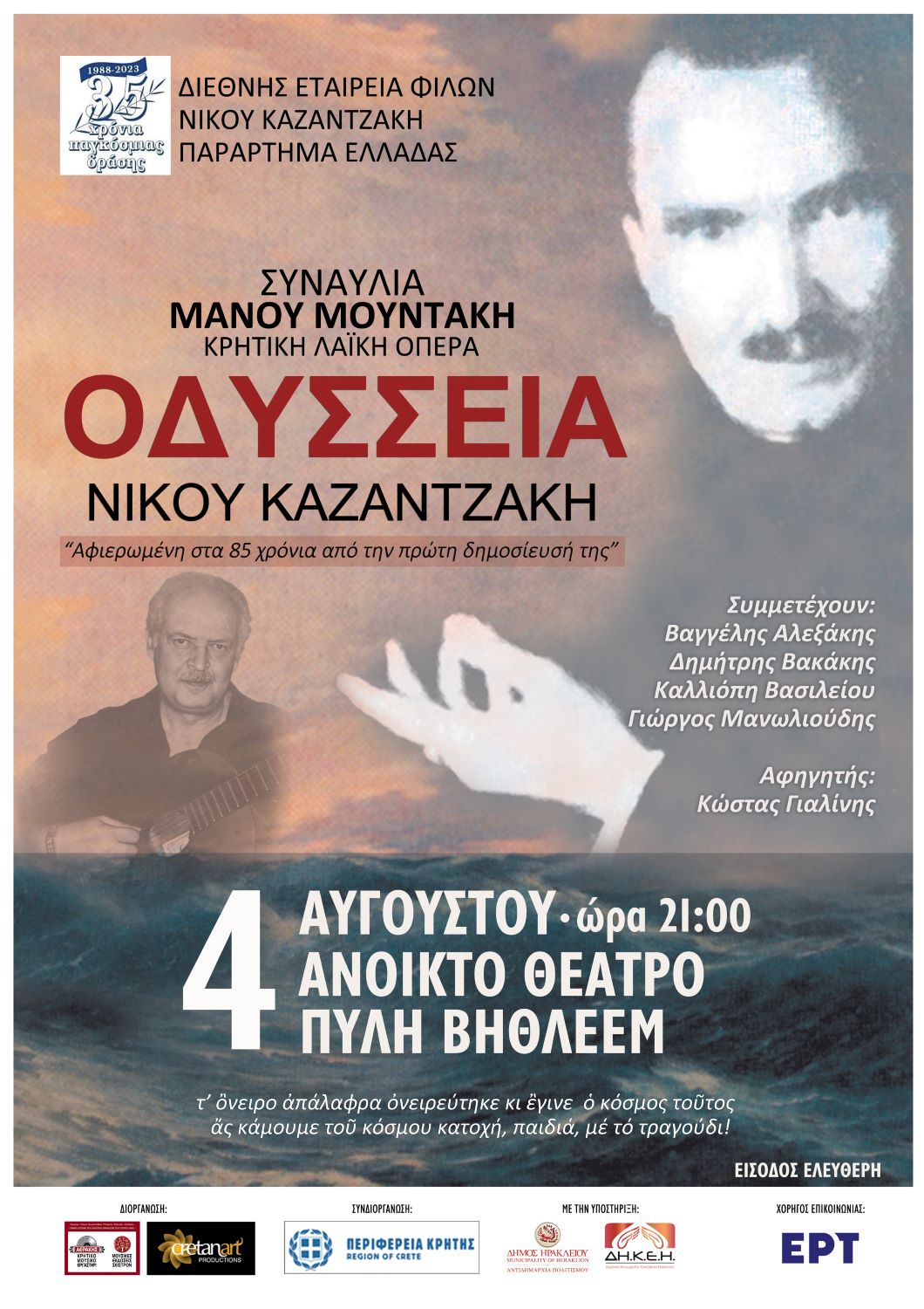 Την Πέμπτη 03 Αυγούστου 2023 και ώρα 8.00 μ.μ., στην πλατεία του Μουσείου Νίκου Καζαντζάκη, στη Μυρτιά του Δ. Αρχανών Αστερουσίων, θα πραγματοποιηθεί η Διεθνής Κεντρική Επετειακή Εκδήλωση «40 Χρόνια Μουσείο Νίκου Καζαντζάκη».