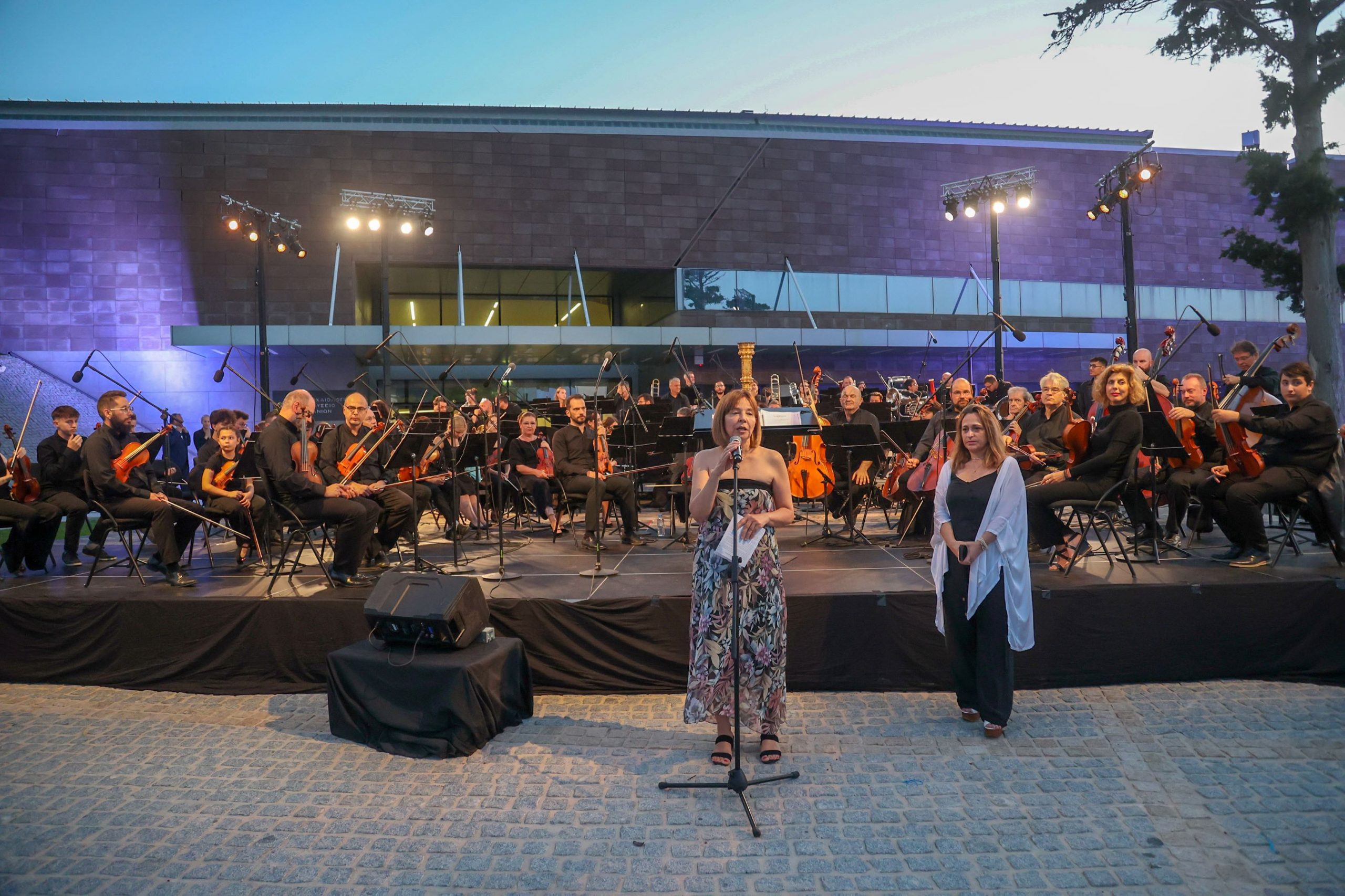 Στην σημαντικότητα της συναυλίας, αλλά και στο φιλόδοξο πρόγραμμα δράσεων της Περιφέρειας Κρήτης αναφέρθηκε στο χαιρετισμό του ο Αντιπεριφερειάρχης της Π.Ε Χανίων Νίκος Καλογερής. Χαιρετισμό επίσης απεύθυνε η Πρ/η της εφορείας Αρχαιοτήτων Χανίων Ελένη Παπαδοπούλου, όπως και εκ μέρους της Κρατικής ορχήστρας χαιρετισμό επίσης απηύθυνε ο πρόεδρος των μουσικών Νίκος Χαλιάσας. Ο ίδιος ευχαρίστησε όλους τους Κρητικούς για την αγάπη τους, τους κ.κ. Αρναουτάκη – Ζάχαρη για την πρόσκληση και φιλοξενία, την ορχήστρα νέων Κρήτης, το μαέστρο Μίλτο Λογιάδη καθώς και τους εξαιρετικούς σολίστ Βασιλική Καραγιάννη και Δημήτρη Πακσόγλου για την συνεργασία. Είναι τιμή για εμάς να ερχόμαστε στο νησί σας και να συνεργαζόμαστε με την Περιφέρεια Κρήτης» είπε χαρακτηριστικά ο κ. Χαλιάσας τον οποίο συνεχάρη ο κ. Ζάχαρης και ευχαρίστησε δημόσια όπως και όλους τους μουσικούς της κρατικής ορχήστρας, το μαέστρο, τους μουσικούς της ορχήστρα νέων και τους σολίστ. Το Φεστιβάλ Κρήτης διοργανώνεται από την Περιφέρεια Κρήτης τελεί υπό την αιγίδα του Υπουργείου Πολιτισμού και η παρουσίαση των εκδηλώσεων γίνεται από την συνεργάτιδα του προέδρου, την Ιωάννα Γιάνναρη που είναι υπεύθυνη για το σχεδιασμό και την καλλιτεχνική επιμέλεια του Φεστιβάλ. Παρόντες στην συναυλία παράλληλα με τον κ. Ζάχαρη, κ. Καλογερή, την κα. Παπαδοπούλου, ήταν: Ο Δήμαρχος Χανίων Παναγιώτης Σημανδηράκης, η Περιφερειακή σύμβουλος – Προέδρος ΔΗΠΕΘΕΚ, Σοφία Μαλανδράκη, ο Περιφερειακός σύμβουλος Λευτέρης Κοπάσης, οι Αντιδήμαρχοι Γιάννης Γιαννακάκης, Τάσος Αλόγλου, ο Πρόεδρος Αρχαιολογικού Μουσείου Ηρακλείου Ιωακείμ Γρυσπολάκης, ο π. Υπουργός Γιώργος Σταθάκης, η π. Γεν. Γραμμ. ΥΠΠΟ Μαρία Βλαζάκη, ο Ακαδημαϊκός και πρώην Πρέσβης της Μ. Βρετανίας στην Ελλάδα Michael Llewellyn Smith και πλήθος κόσμου.