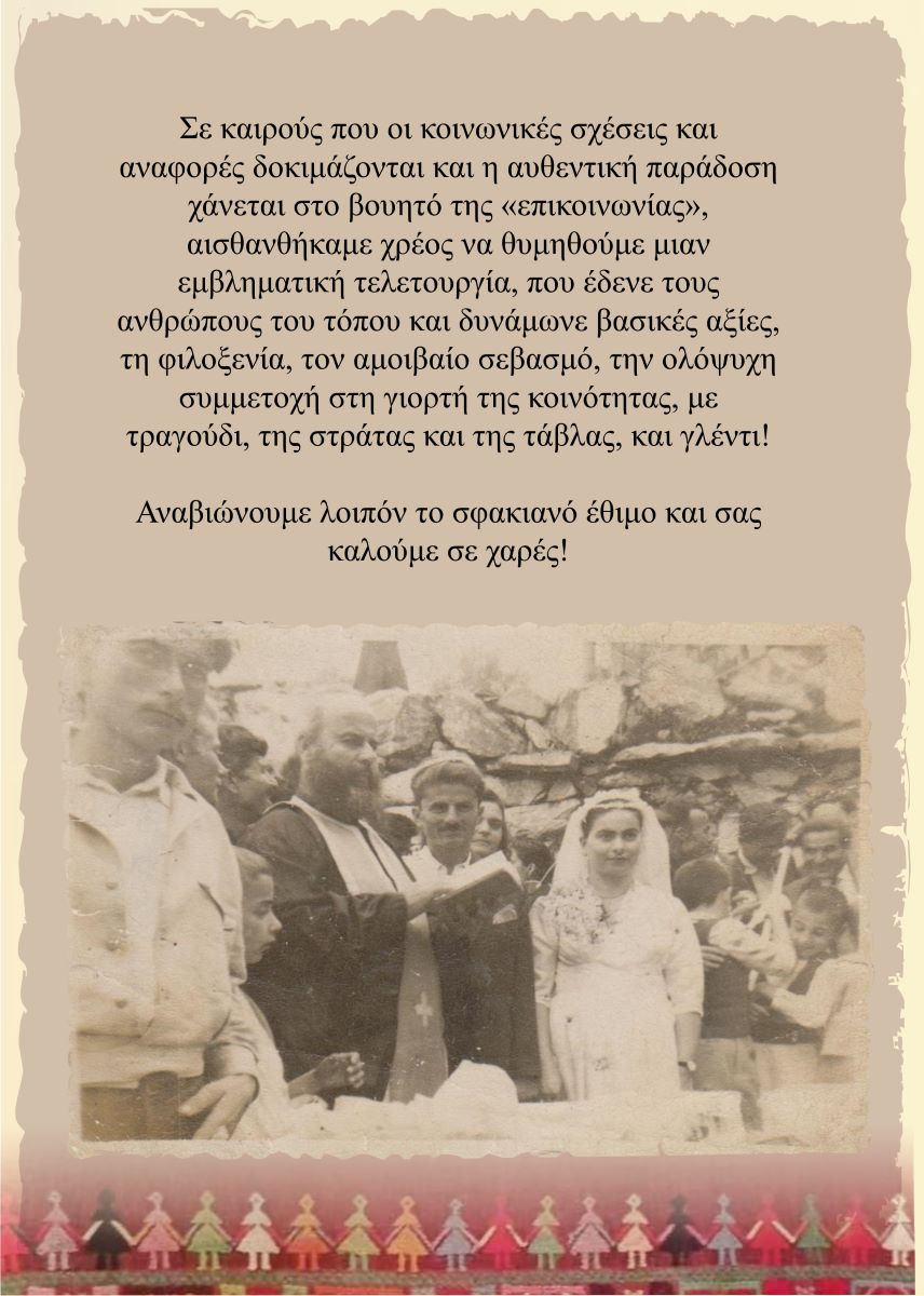 Αναβιώνουμε λοιπόν το Σφακιανό έθιμο και σας καλούμε σε χαρές!