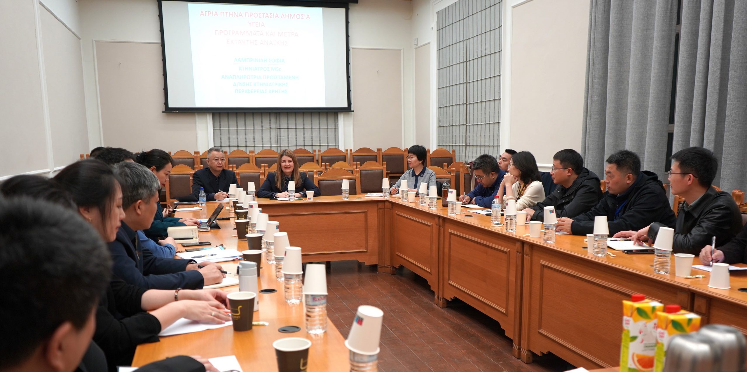 Αντιπροσωπεία του Υπουργείου Γεωργίας της Κίνας με επικεφαλής τον διευθυντή κτηνιατρικής του Υπουργείου Γεωργίας, Zhang Dehui, επισκέφθηκε σήμερα την Περιφέρεια Κρήτης. Την Κινεζική αντιπροσωπεία υποδέχτηκε το στέλεχος του πρωτογενή τομέα της Περιφέρειας Κρήτης Ειρήνη Χουδετσανάκη.