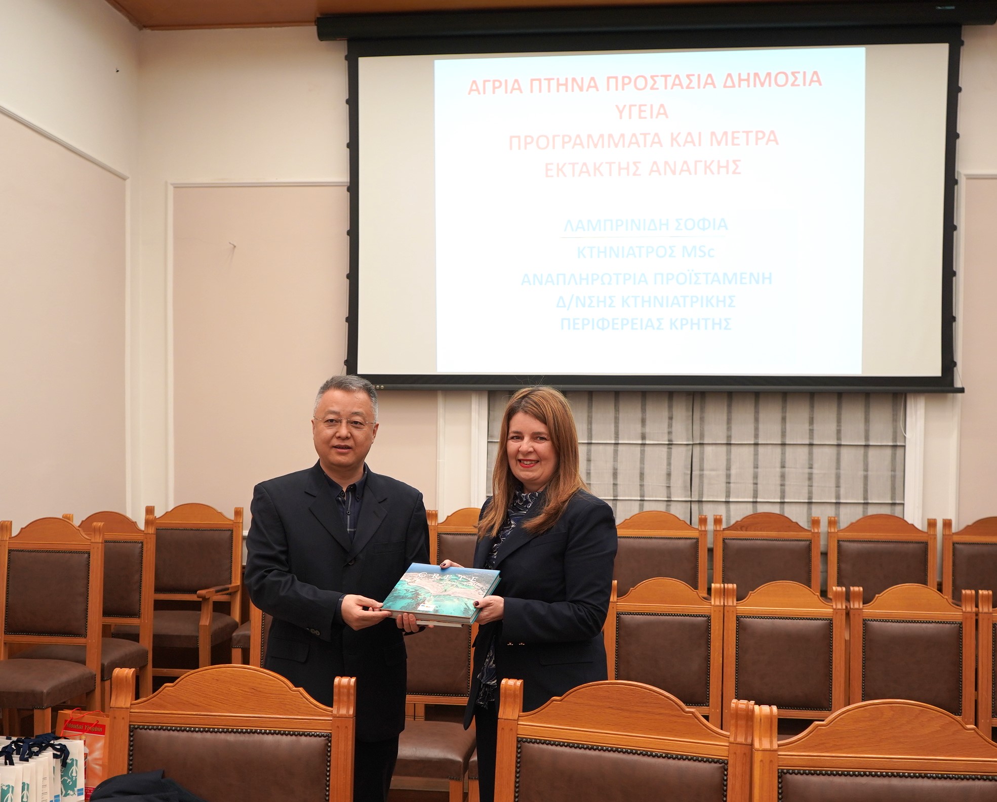 Από την πλευρά του ο διευθυντής κτηνιατρικής του Υπουργείου Γεωργίας Zhang Dehui ευχαρίστησε για την φιλοξενία και την ενημέρωση τον Περιφερειάρχη Κρήτης, της κα. Χουδετσανάκη, δίνοντας τα εύσημα για το πρόγραμμα λήψης και υλοποίησης μέτρων στο νησί για την προστασία την μοναδικής πανίδας του.