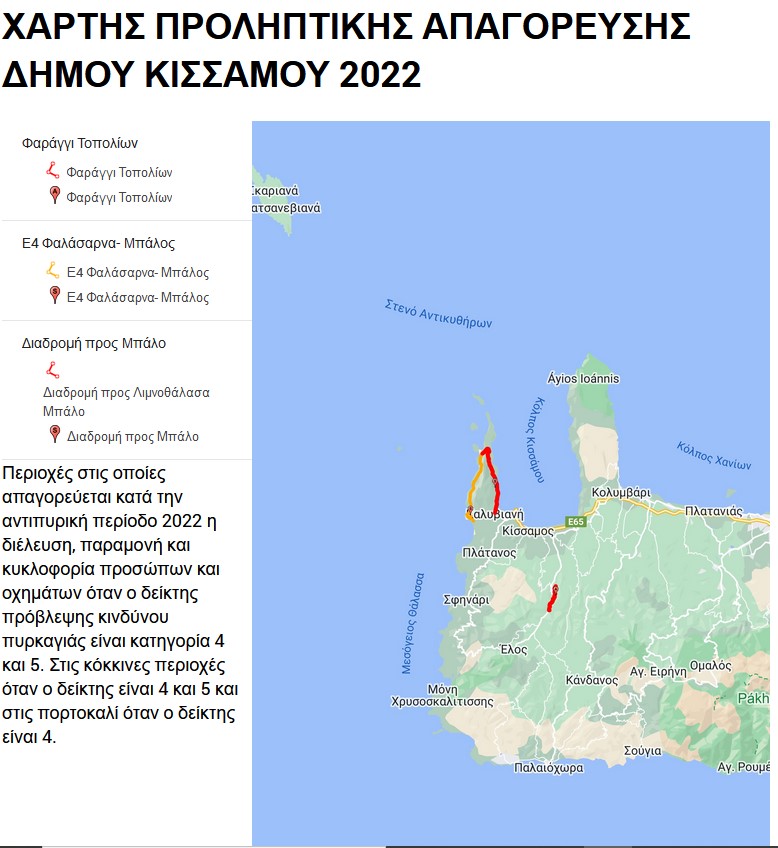 Απόφαση Απαγόρευσης Κυκλοφορίας σε Δείκτη Κινδύνου Πυρκαγιάς 4 & 5 Π.Ε. Χανίων