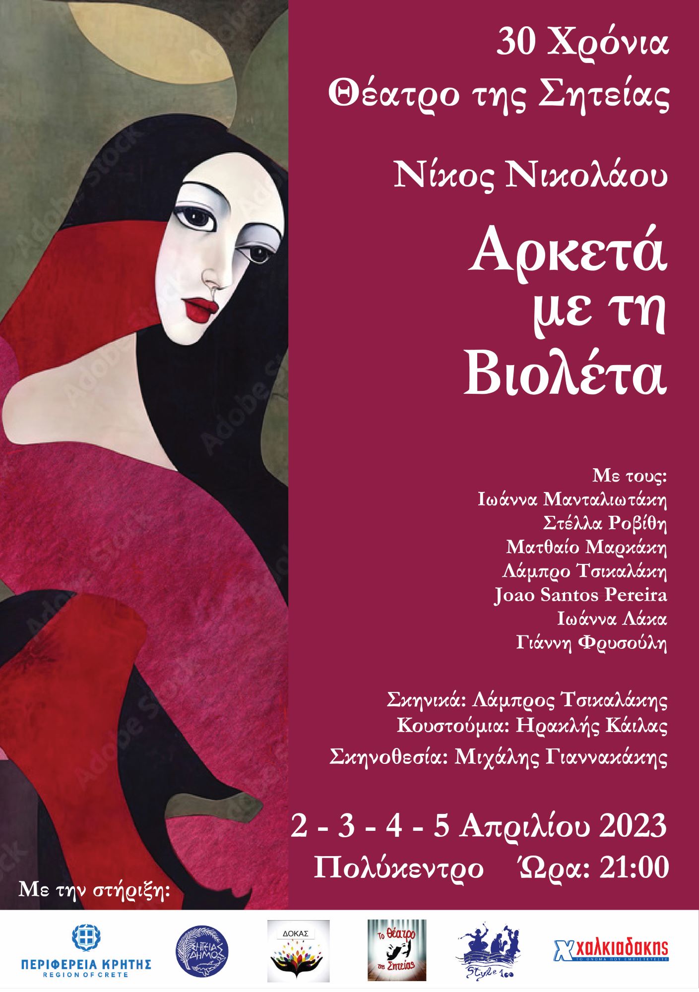 Tην Κυριακή 02/04, την Δευτέρα 03/04, την Τρίτη 04/04 και την Τετάρτη 05/04, στις 9 το βράδυ, παρουσιάζεται η κωμωδία του Νίκου Νικολάου «Αρκετά με τη Βιολέτα» στο Πολύκεντρο του Δήμου Σητείας.