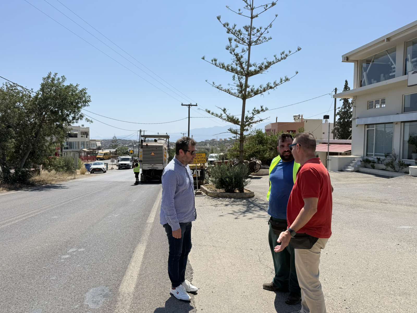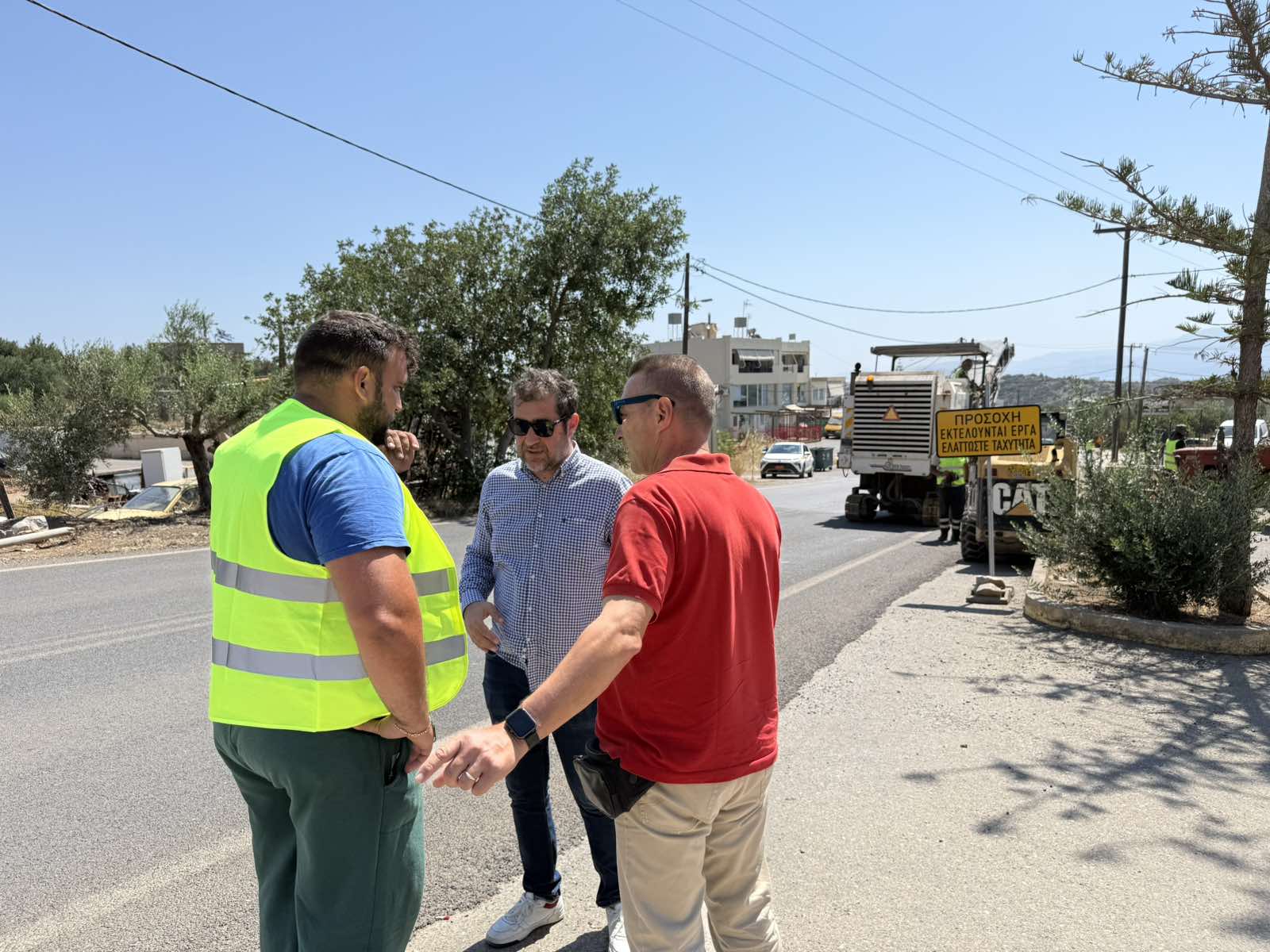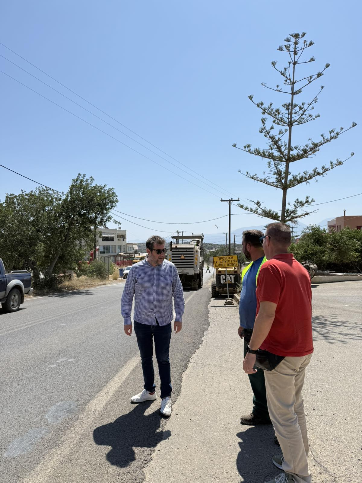 Ο Αντιπεριφερειάρχης Λασιθίου συναντήθηκε με τον Πρόεδρο της Κοινότητας, Γιώργο Σκύβαλο, ο οποίος εξέφρασε την ικανοποίησή του για την έναρξη των εργασιών, υπογραμμίζοντας τη σημασία έργου για την ασφάλεια πεζών και οδηγών.