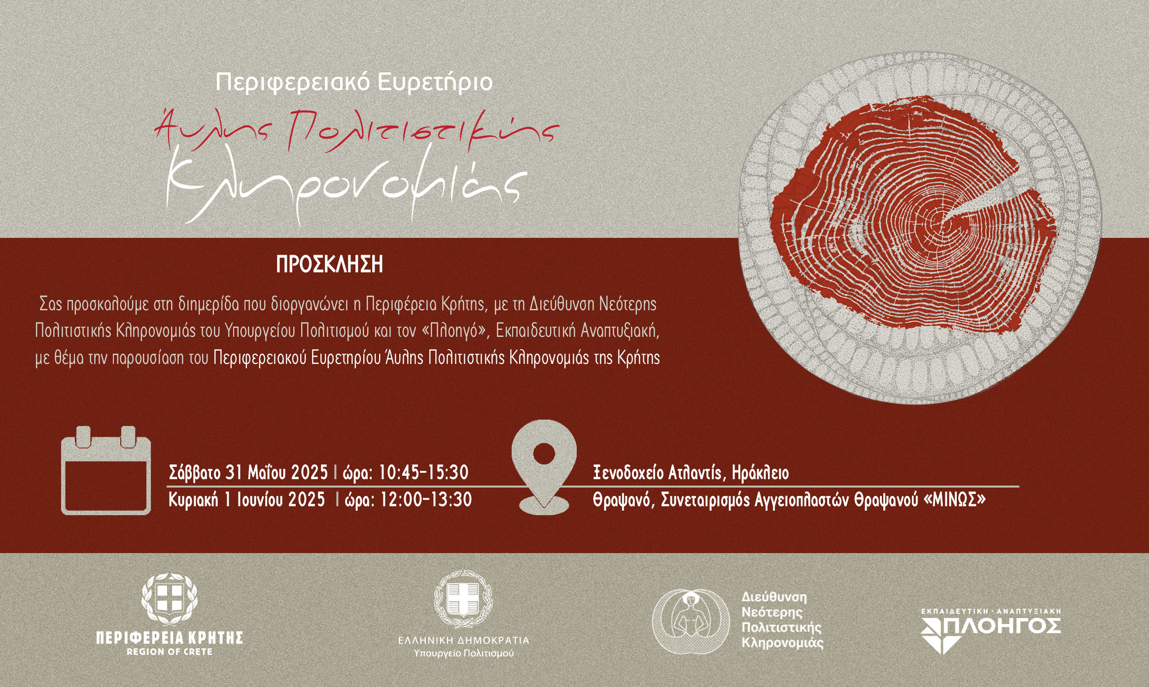 Διημερίδα Περιφέρειας Κρήτης «Περιφερειακό Ευρετήριο Άυλης Πολιτιστικής Κληρονομιάς της Κρήτης: Παρουσίαση, Δυνατότητες και Προοπτικές».
