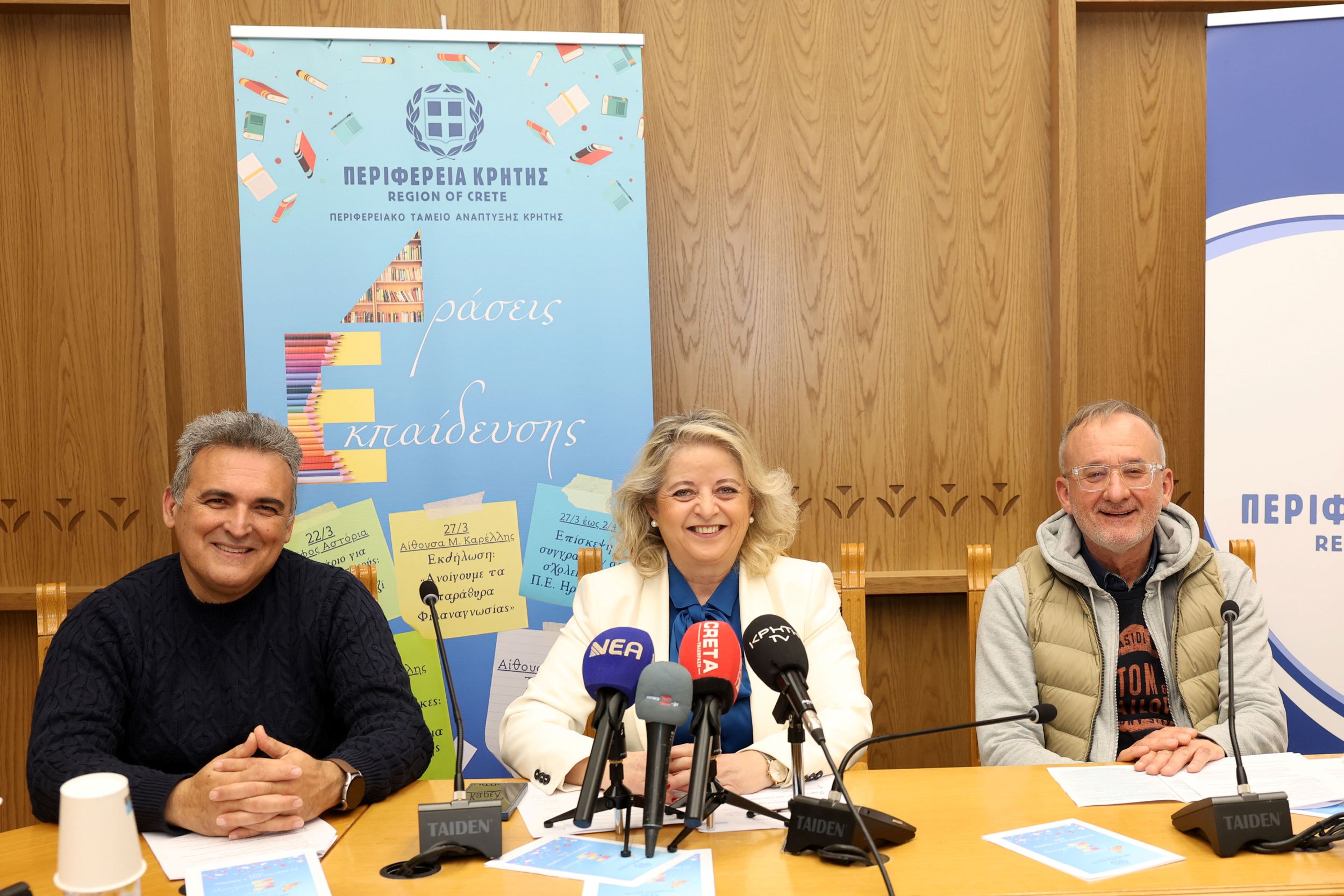 Η Περιφέρεια Κρήτης, σε συνεργασία με τους Συλλόγους Εκπαιδευτικών Πρωτοβάθμιας Εκπαίδευσης Ηρακλείου («Δομήνικος Θεοτοκόπουλος», «Νίκος Καζαντζάκης», «Φαιστός») και την ΕΛΜΕ Ηρακλείου, διοργανώνει τις «Δράσεις Εκπαίδευσης», έναν κύκλο εκδηλώσεων αφιερωμένο στη φιλαναγνωσία, την επαγγελματική ανάπτυξη των εκπαιδευτικών και την καλλιέργεια πολιτιστικών δεξιοτήτων στους μαθητές.
