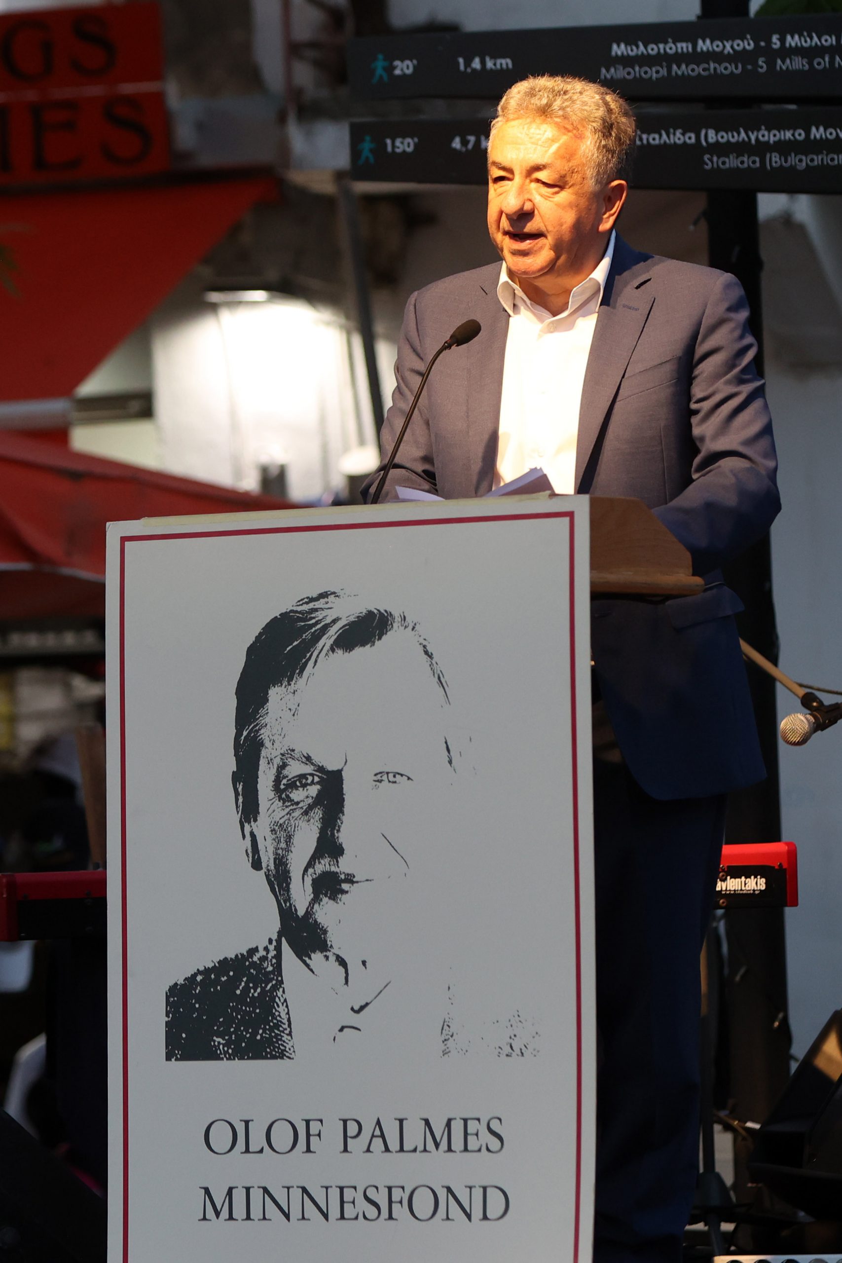 Ο Περιφερειάρχης αναφέρθηκε στη συνεργασία με το Σύλλογο Φίλων Ούλοφ Πάλμε για την ολοκλήρωση του μουσείου, το οποίο όπως ανάφερε «εδραιώνει τη θέση της Κρήτης στον τομέα του πολιτισμού και της νεότερης πολιτικής ιστορίας. Πρόκειται για μια σύγχρονη κοιτίδα της νεότερης ευρωπαϊκής ιστορίας, που εναρμονίζεται με τη Στρατηγική επιλογή της Περιφέρειας για την εφαρμογή μιας πολιτικής εξωστρέφειας για τον σύγχρονο πολιτισμό που στοχεύει στη σύνδεση του ελληνικού πολιτιστικού πεδίου με τα διεθνή ρεύματα και τεκταινόμενα και συγχρόνως στην ανάδειξη και προβολή της σύγχρονης ελληνικής πολιτιστικής δημιουργίας στη διεθνή σκηνή». Αναφερόμενος στη σπουδαία προσωπικότητα του Πάλμε τόνισε πως «παραμένει στη μνήμη όλων μας, ως μια ηγετική προσωπικότητα που ακόμα και σήμερα επικοινωνεί με την Ιστορία, πολύπλευρος και οραματιστής. Αλλά πάντα σπουδαίος. Κεφάλαιο του ευρωπαϊκού κεκτημένου. Μέσα από την στενή φιλία του με τον Ανδρέα Παπανδρέου, οι ιστορικοί δεσμοί του με την Κρήτη και την Ελλάδα παραμένουν ισχυροί. Με αυτό το δεδομένο, σας διαβεβαιώνουμε ότι το Μουσείο Πάλμε στο Μοχό θα διατηρήσει ζωντανές τις αξίες και την παρακαταθήκη του σπουδαίο ηγέτη της νεότερης Ευρώπης».