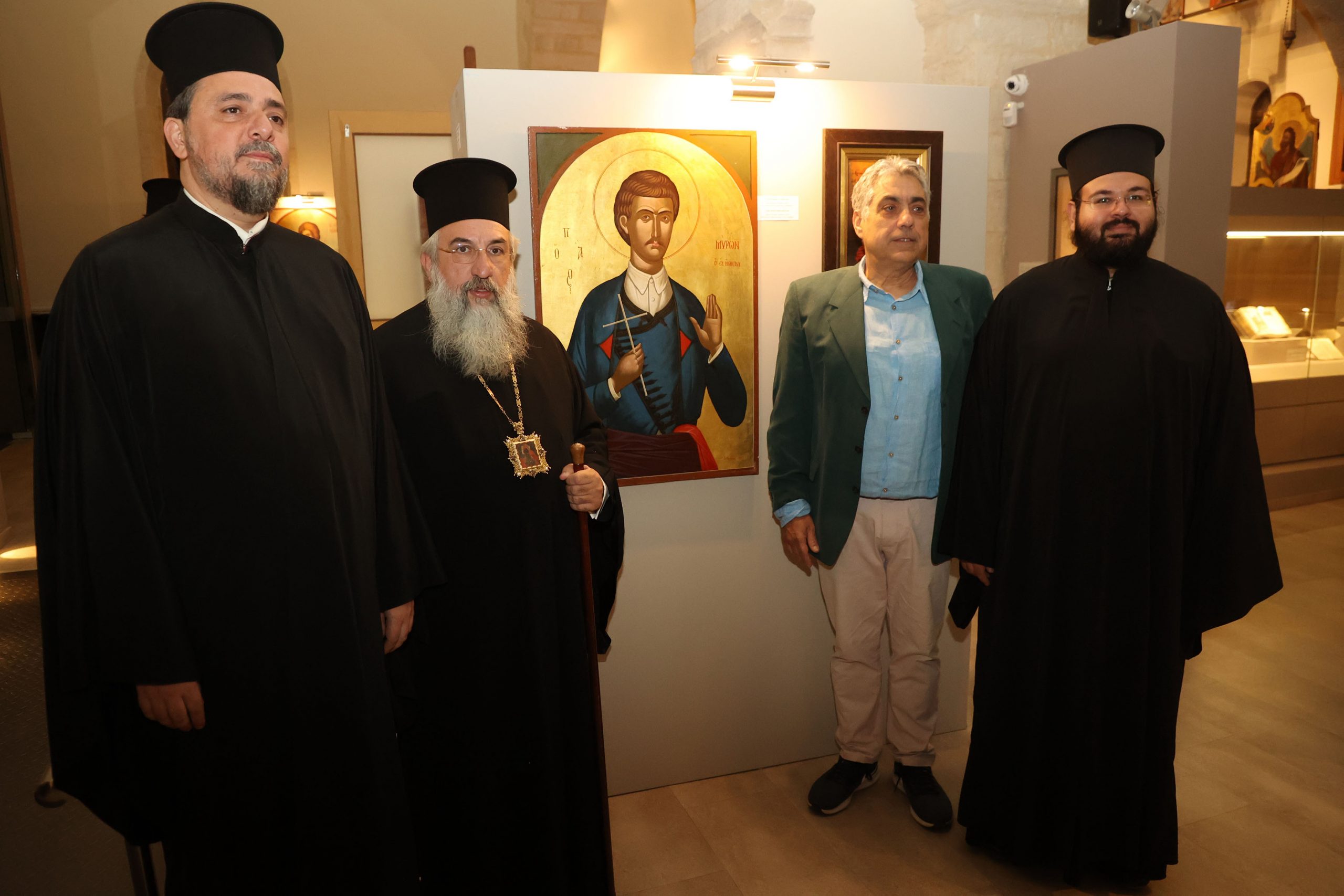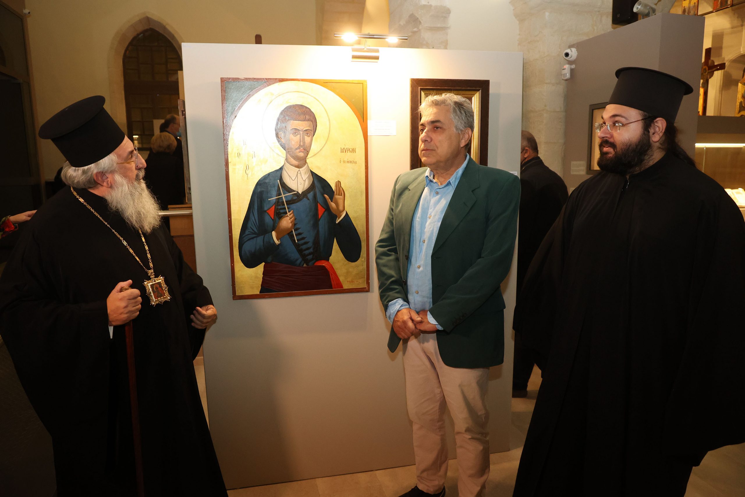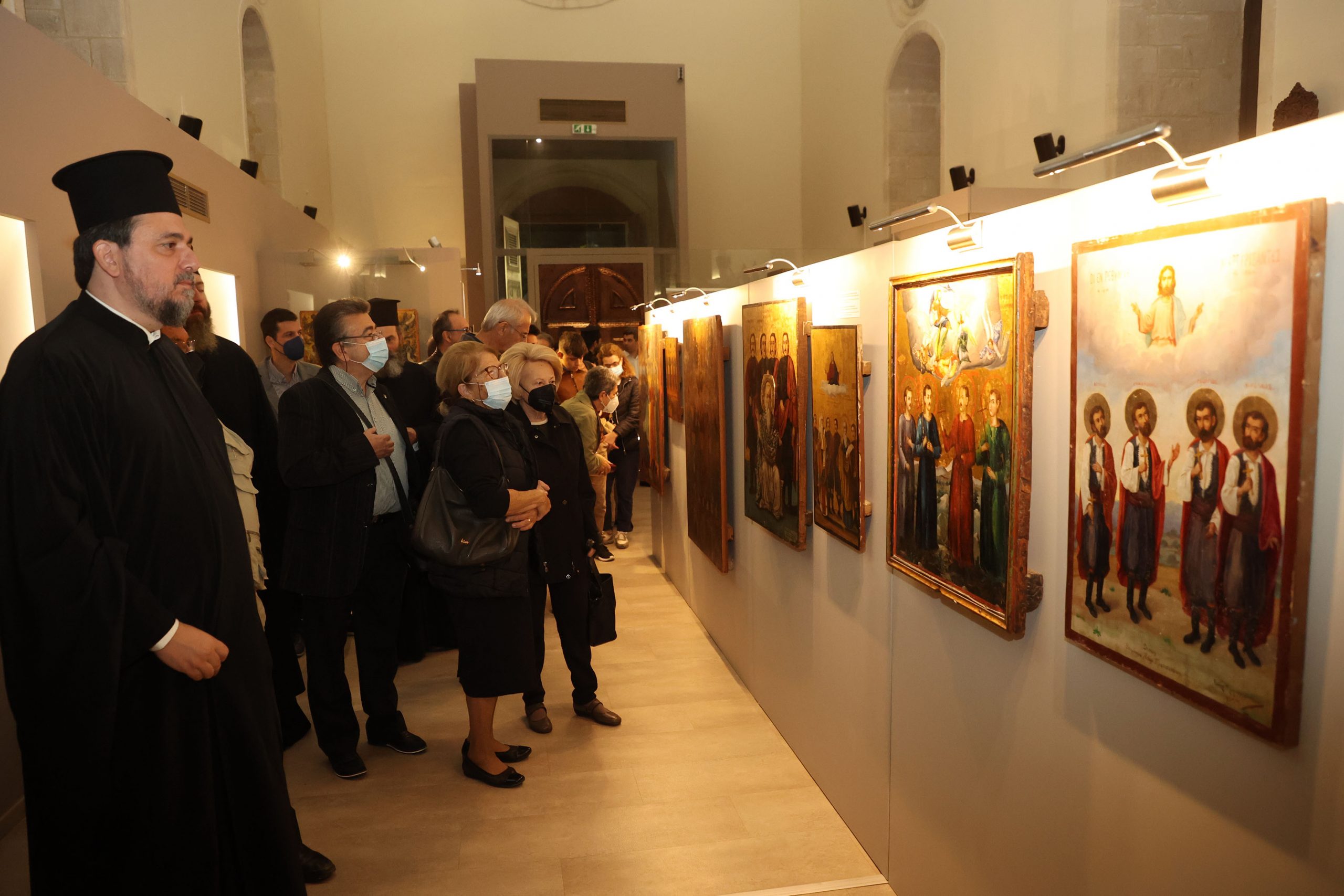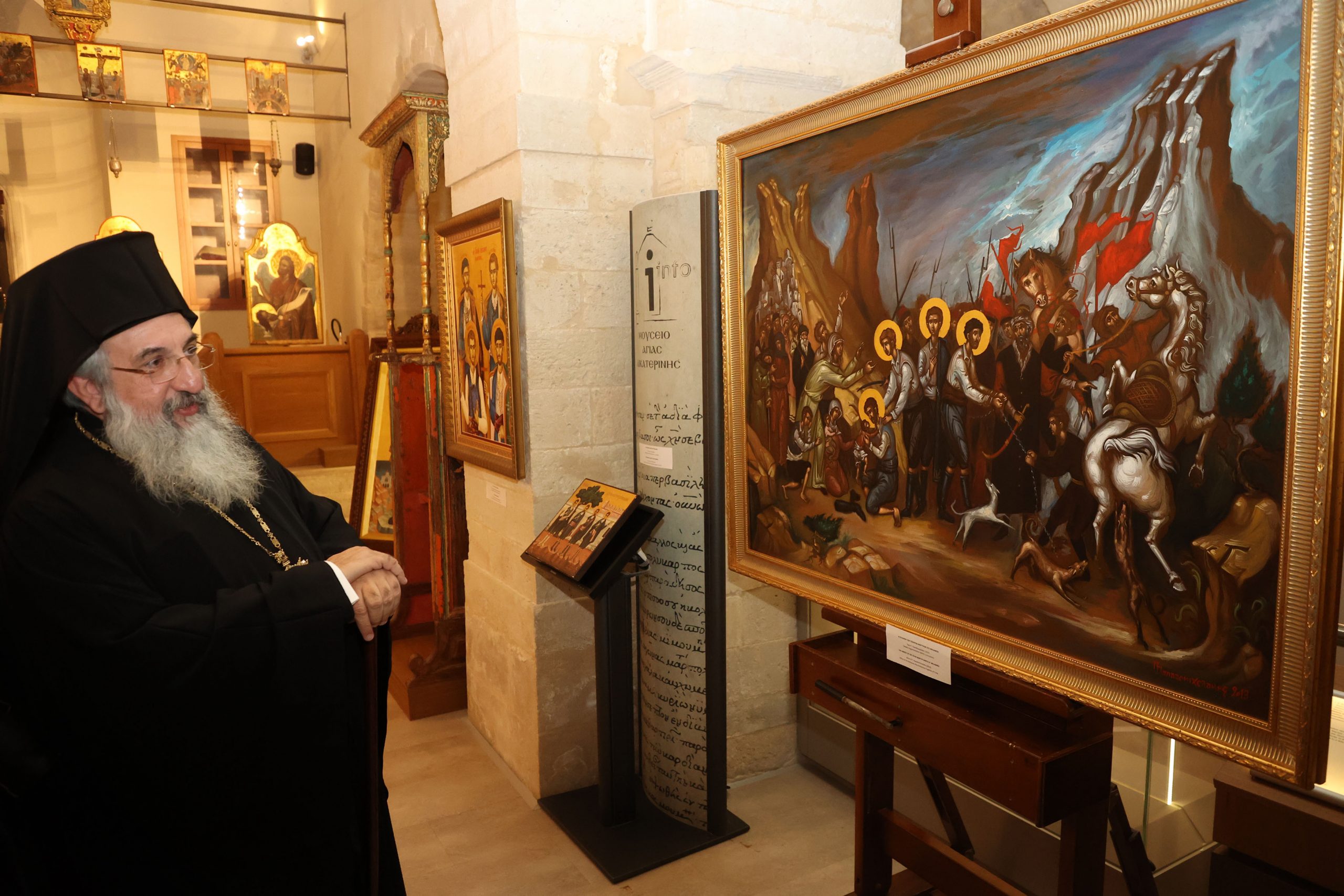 Το παλαιότερο έργο της έκθεσης χρονολογείται από το 1836 διά χειρός του Ζακυνθινού ζωγράφου Ιωάννη Φραγκόπουλου και απεικονίζει τους Τέσσερις Νεομάρτυρες του Ρεθύμνου. Ξεχωρίζει γιατί στη μία άκρη της εικόνας τούς βλέπουμε μπροστά στον πασά και στην άλλη αναπαριστάται ο αποκεφαλισμός τους.