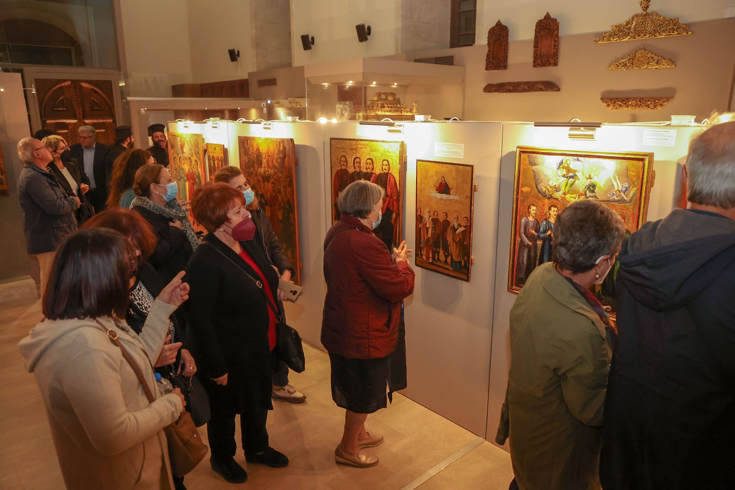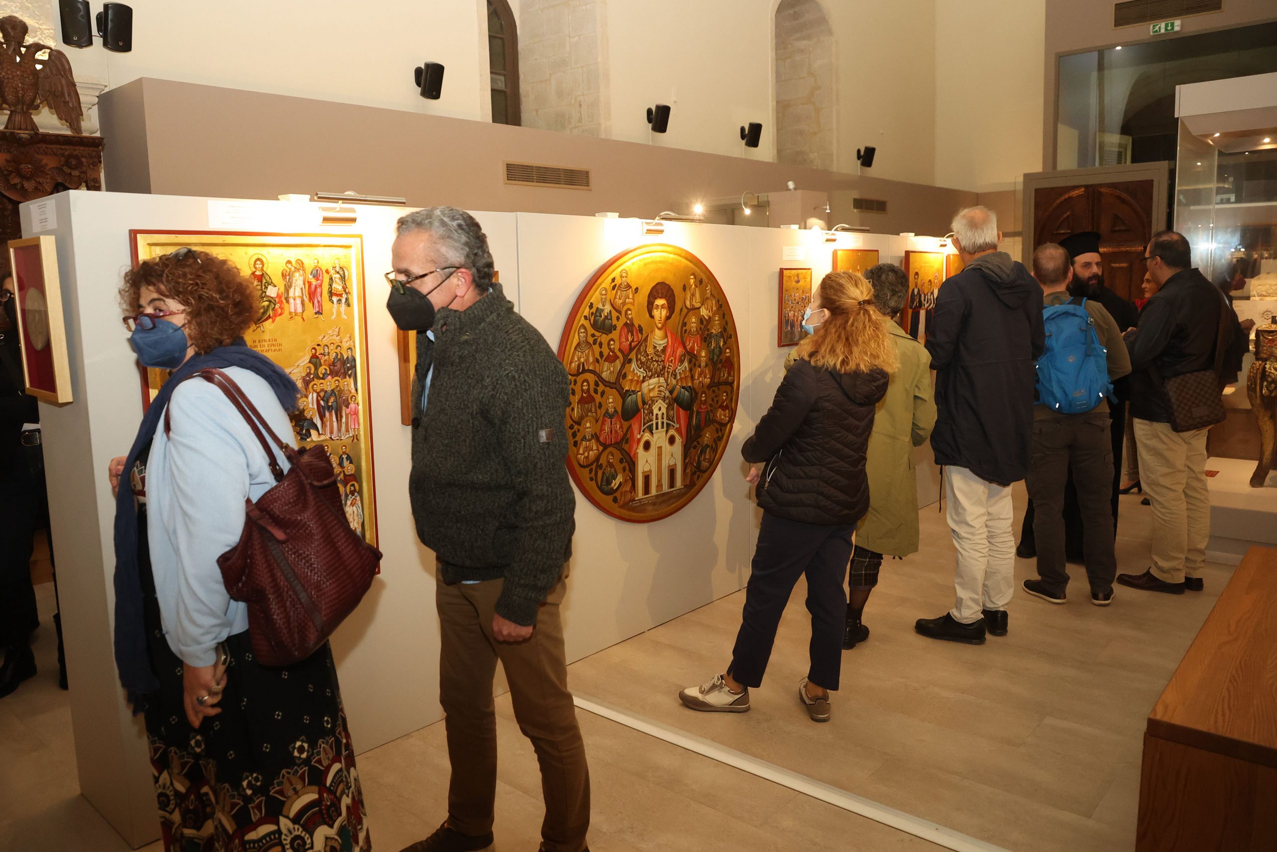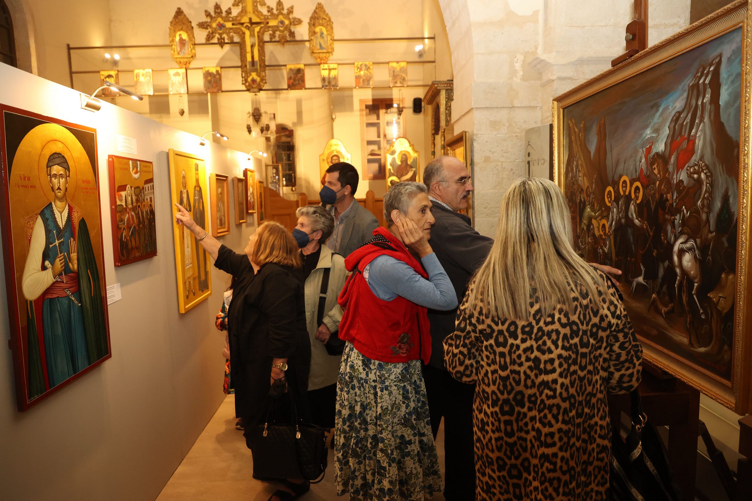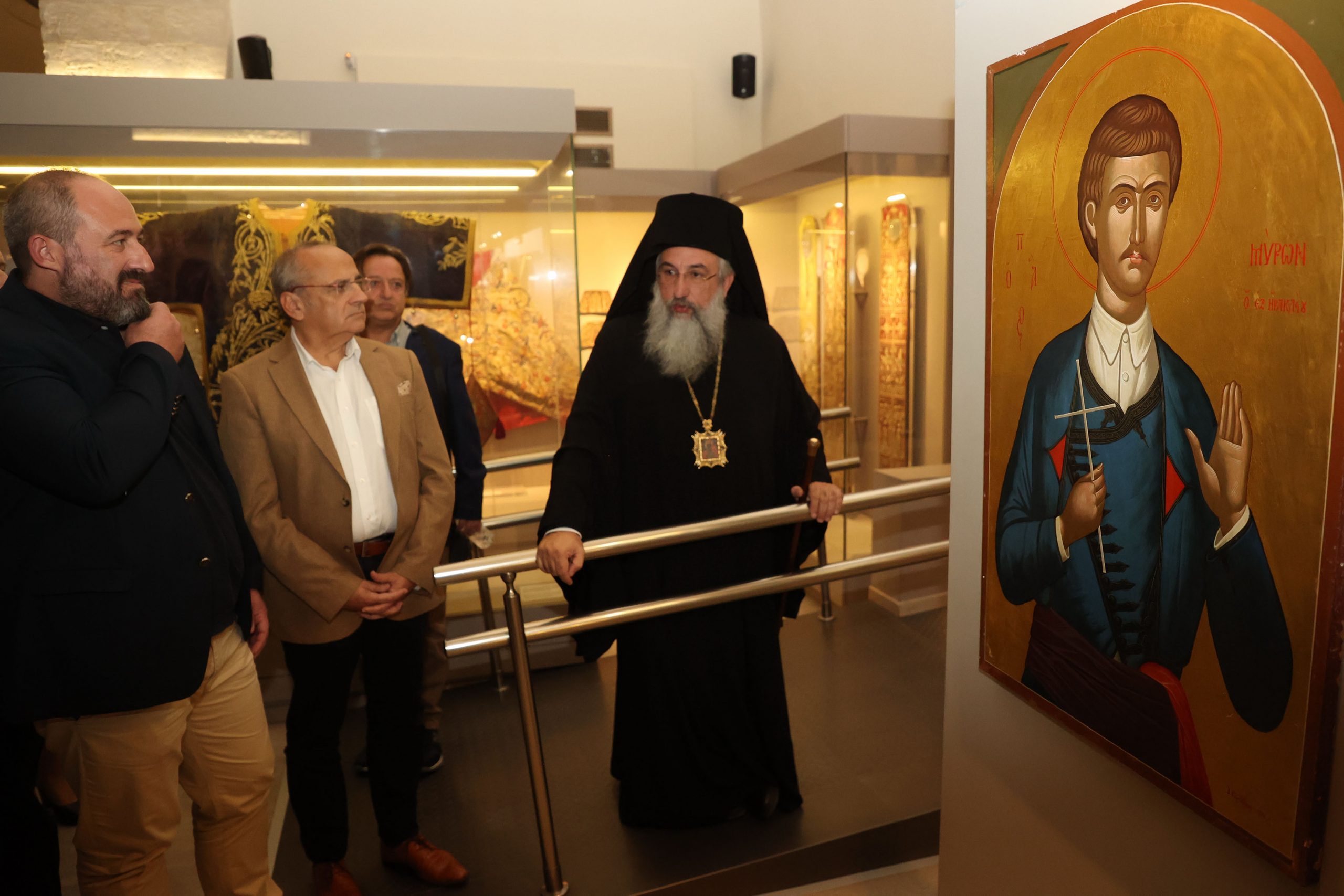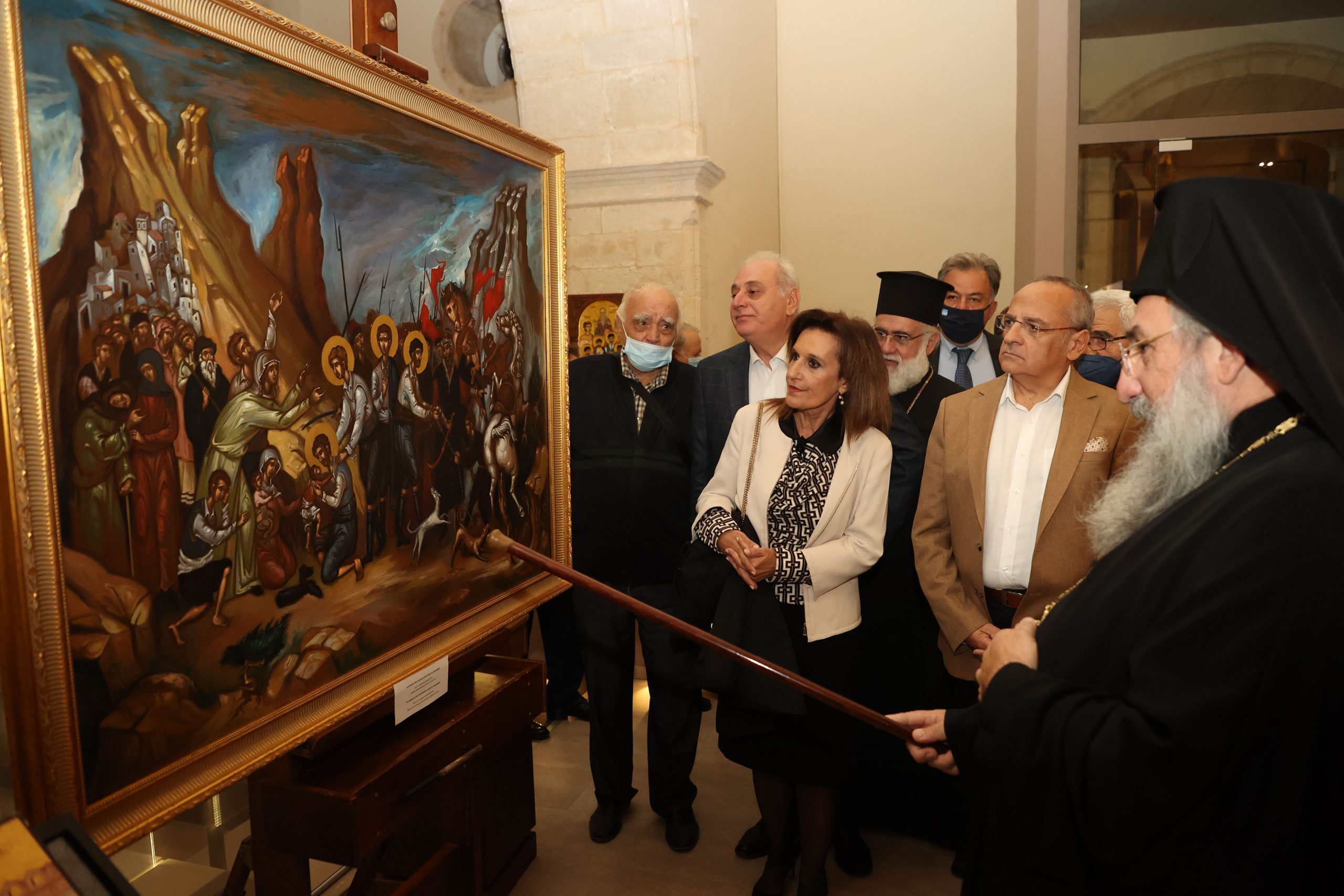 Το παλαιότερο έργο της έκθεσης χρονολογείται από το 1836 διά χειρός του Ζακυνθινού ζωγράφου Ιωάννη Φραγκόπουλου και απεικονίζει τους Τέσσερις Νεομάρτυρες του Ρεθύμνου. Ξεχωρίζει γιατί στη μία άκρη της εικόνας τούς βλέπουμε μπροστά στον πασά και στην άλλη αναπαριστάται ο αποκεφαλισμός τους.