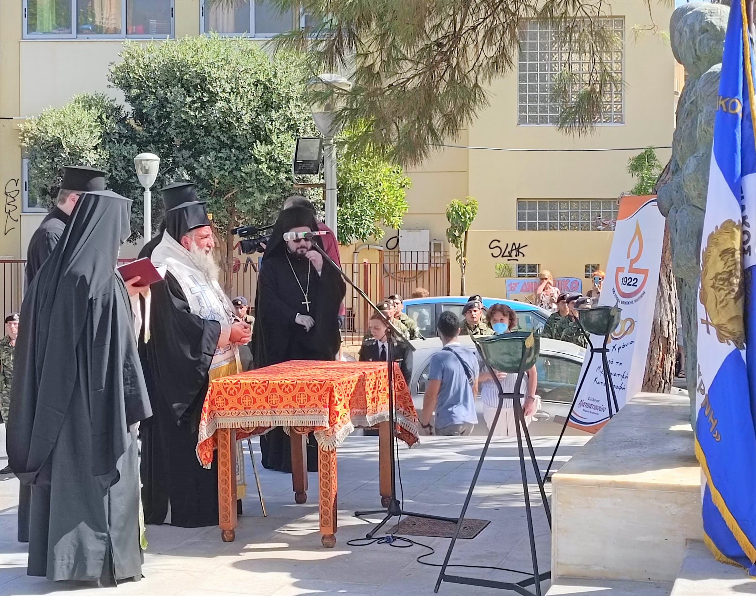 Ακολούθησε επιμνημόσυνη δέηση στο μνημείο Μικρασιατικού Ελληνισμού (στη συμβολή Λ. Κνωσσού και Ιωνίας), που τέλεσε ο Σεβασμιότατος Αρχιεπίσκοπος Κρήτης κ. Ευγένιος.