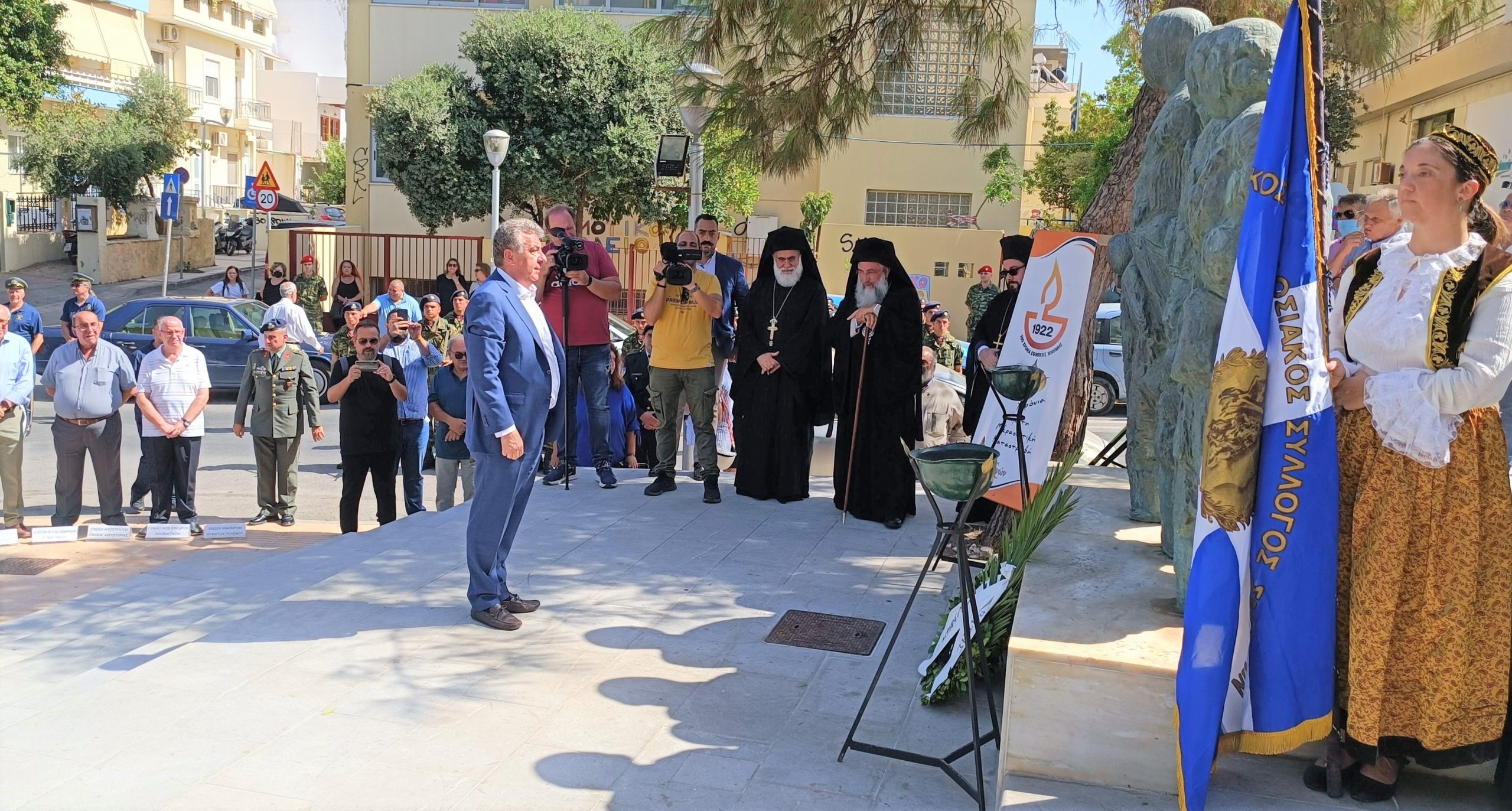 «Η Μικρασιατική Καταστροφή προκάλεσε τεράστιο κόστος σε ανθρώπινες ζωές, σηματοδότησε όμως και το συγκλονιστικό γεγονός της οριστικής απώλειας εθνικών εδαφών, στα οποία ήκμασε ο Ελληνισμός για χιλιετίες. Ύστερα και από την ανακήρυξη από την Περιφέρεια Κρήτης του 2022, ως έτους Μικρασιατικού Ελληνισμού, τιμούμε τη μνήμη των χιλιάδων θυμάτων, αλλά και των προσφύγων, που βασανισμένοι κατόρθωσαν να επιβιώσουν αρχικά, και να προκόψουν έπειτα, συμβάλλοντας καθοριστικά στην πρόοδο του τόπου μας, και τη διαμόρφωση της εθνικής μας ταυτότητας. Το οφείλουμε στην ίδια την ιστορία μας και στις χιλιάδες των σημερινών Κρητών με προσφυγική καταγωγή. Σήμερα 100 χρόνια μετά, το μυαλό μας επιστρέφει και πάλι στα ματωμένα χώματα του Μικρασιατικού Ελληνισμού,  τον οποίο θεωρούμε αναπόσπαστο κομμάτι ης Ιστορίας μας, κοιτίδα πολιτισμού που πέρασε από την ιστορία στη μνήμη και στην καρδιά όλων των Ελλήνων».