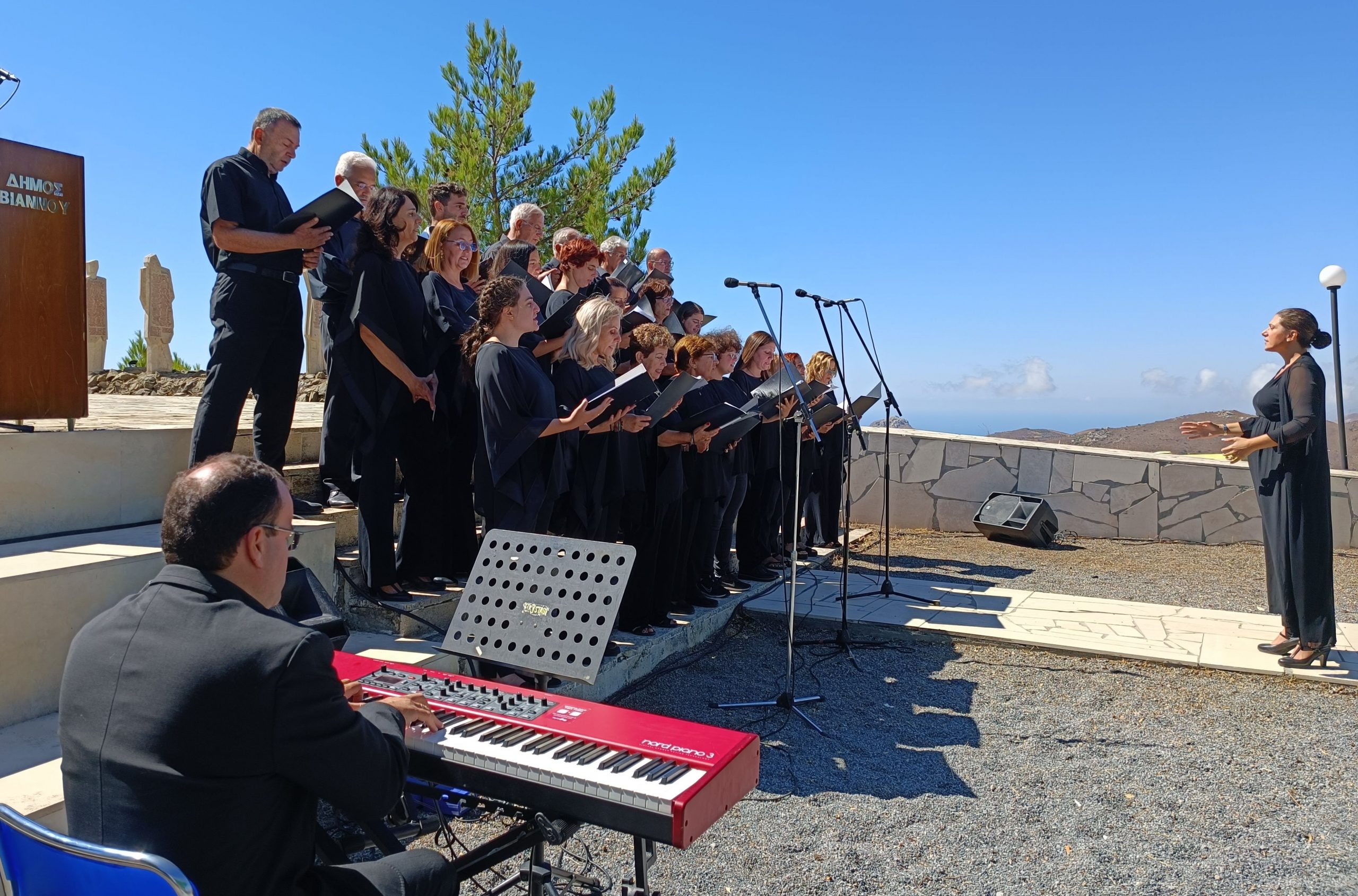 Ακολούθησε ο ύμνος της Βιάννου από τη Μικτή Χορωδία της Περιφερειακής Ενότητας Ηρακλείου, υπό την διεύθυνση της μαέστρου Λένας Χατζηγεωργίου, τήρηση ενός λεπτού σιγής και η ανάκρουση του Εθνικού Ύμνου.