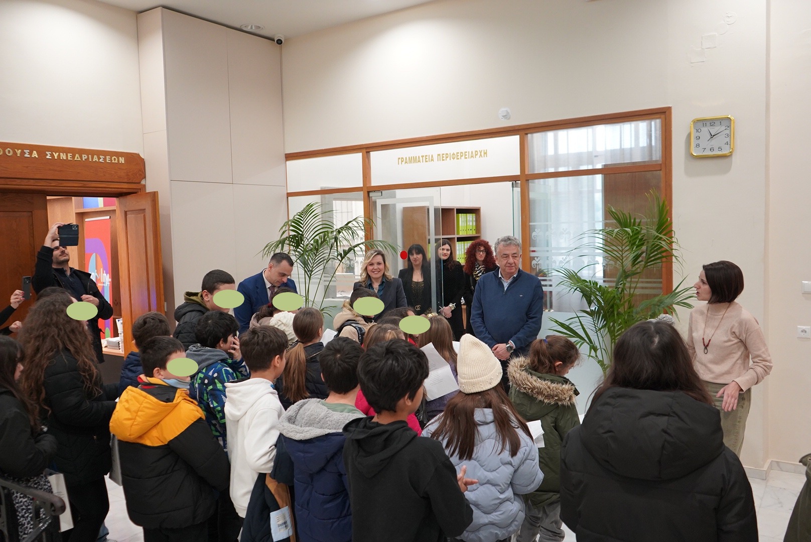 Τους μαθητές και τις μαθήτριες υποδέχτηκε η Αντιπεριφερειάρχης Πολιτισμού και Ισότητας, κυρία Γεωργία Μηλάκη. Το παρών στη δράση έδωσε, επίσης, η Εντεταλμένη Σύμβουλος Παιδείας και Δια Βίου Μάθησης Ελένη Μαράκη.