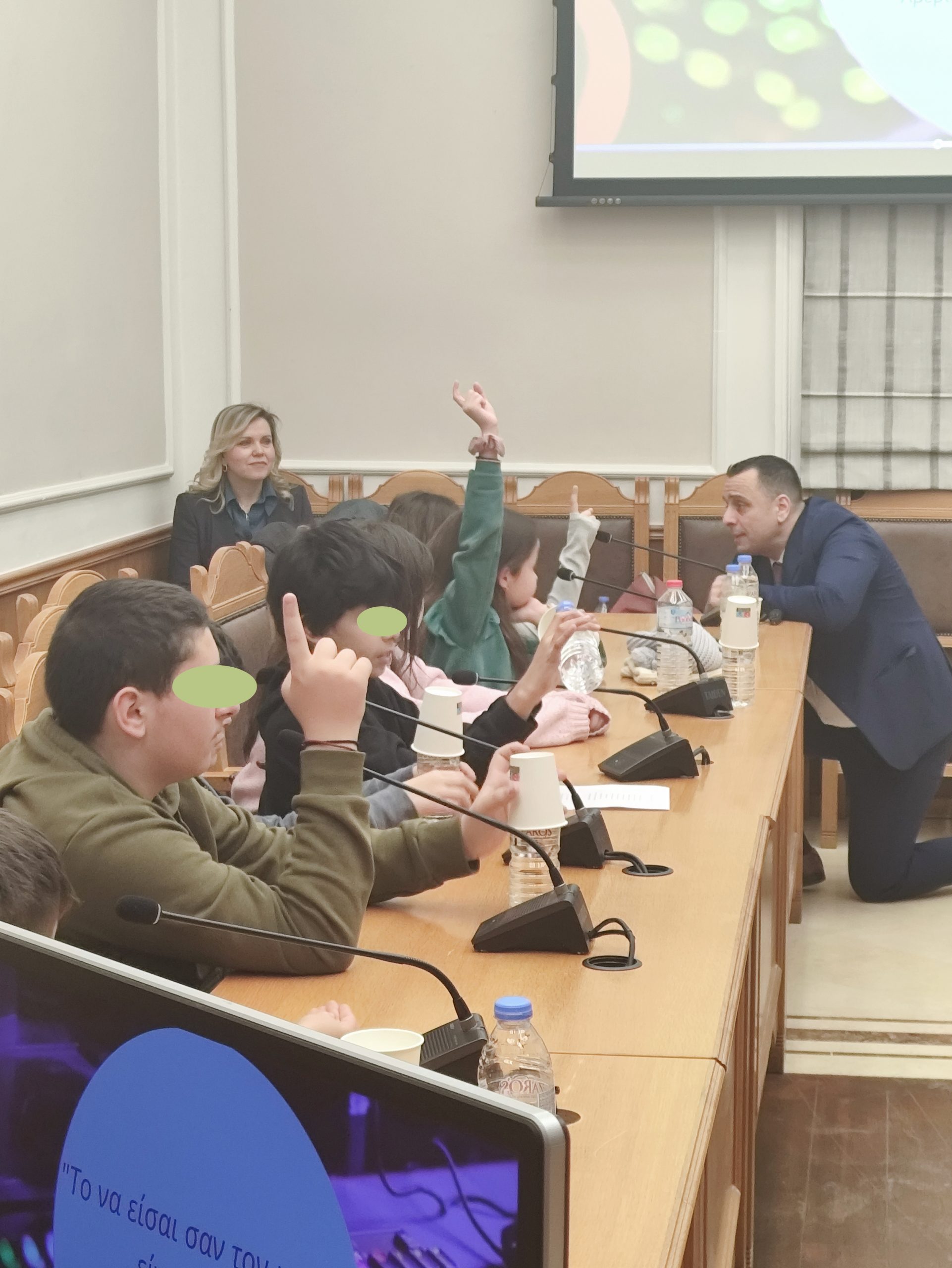 Ο Περιφερειάρχης Κρήτης Σταύρος Αρναουτάκης καλωσόρισε τις μαθήτριες και τους μαθητές που είχαν την ευκαιρία να συνομιλήσουν μαζί του και να του υποβάλουν ερωτήσεις σχετικά με τη λειτουργία της Περιφέρειας Κρήτης. Επίσης, οι μαθήτριες και οι μαθητές του 8ου Πειραματικού Δημοτικού Σχολείου αφιέρωσαν στον κύριο Αρναουτάκη το τραγούδι «Η Βία δεν είναι η λύση».