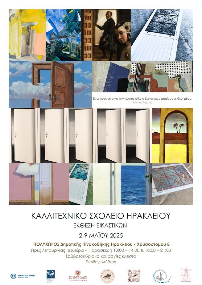 Η έκθεση, που  θα πραγματοποιηθεί από 2 έως 9 Μαΐου στη Δημοτική Πινακοθήκη του Δήμου Ηρακλείου, επί της οδού Χρυσοστόμου 8, περιλαμβάνει έργα ζωγραφικής, γλυπτικής και χαρακτικής της τρέχουσας σχολικής χρονιάς των μαθητριών και μαθητών των εικαστικών εργαστηρίων.