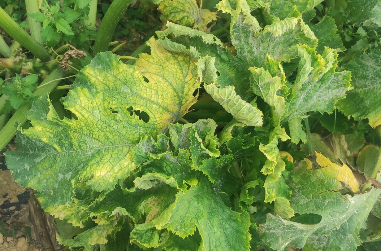 Εικόνα 2. Προσβολή από ToLCNDV υπαίθριας καλλιέργειας    κολοκυθιού στην Π.Ε. Ηρακλείου.