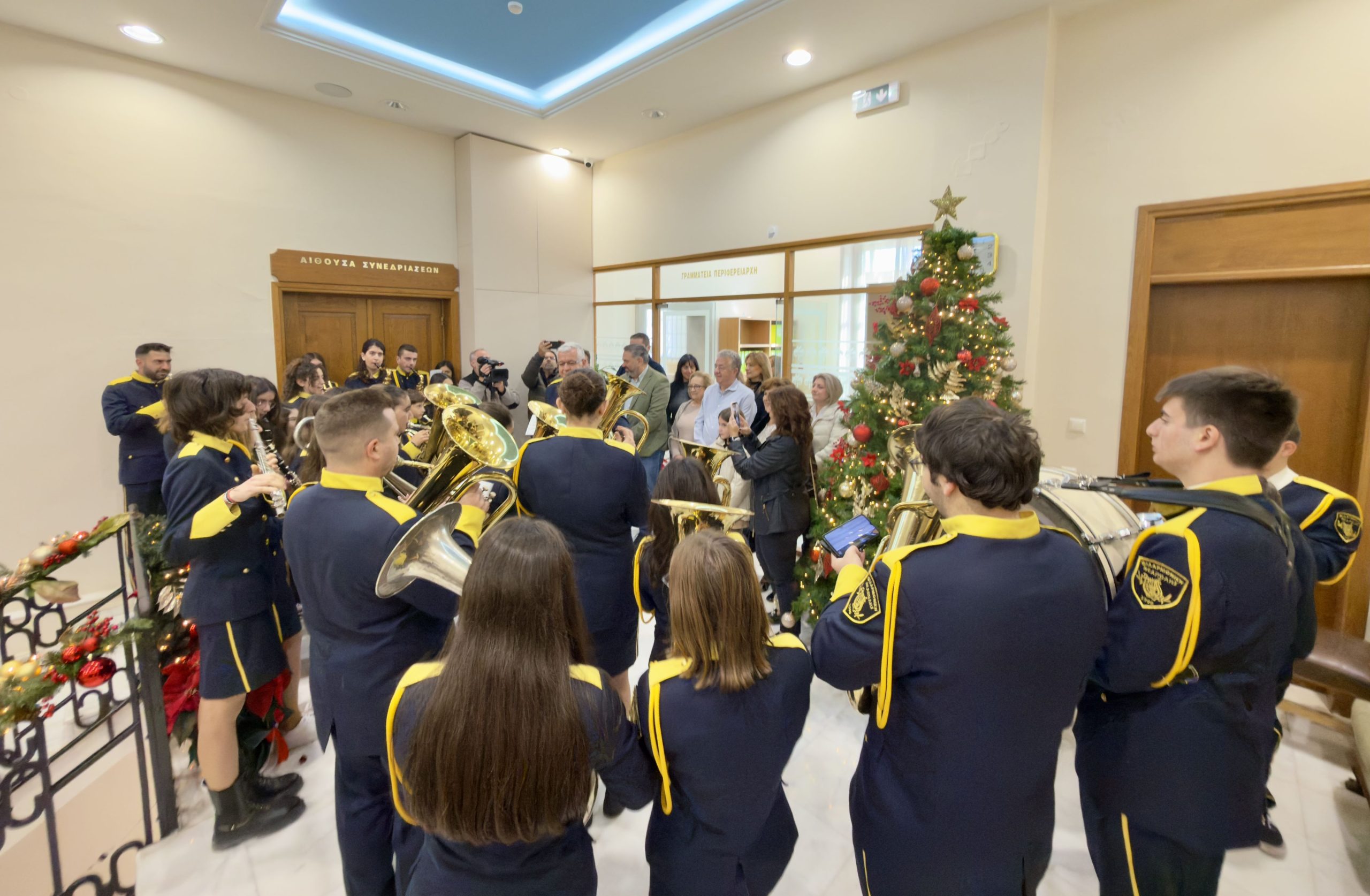 Τα παραδοσιακά κάλαντα και εορταστικές μελωδίες έψαλαν σήμερα στον Περιφερειάρχη Κρήτης Σταύρο Αρναουτάκη τα μέλη της Φιλαρμονικής Νεάπολης, της ιστορικής πρωτεύουσας του Δήμου Αγίου Νικολάου, υπό τη διεύθυνση του αρχιμουσικού Νεκτάριου Αρακαδάκη.