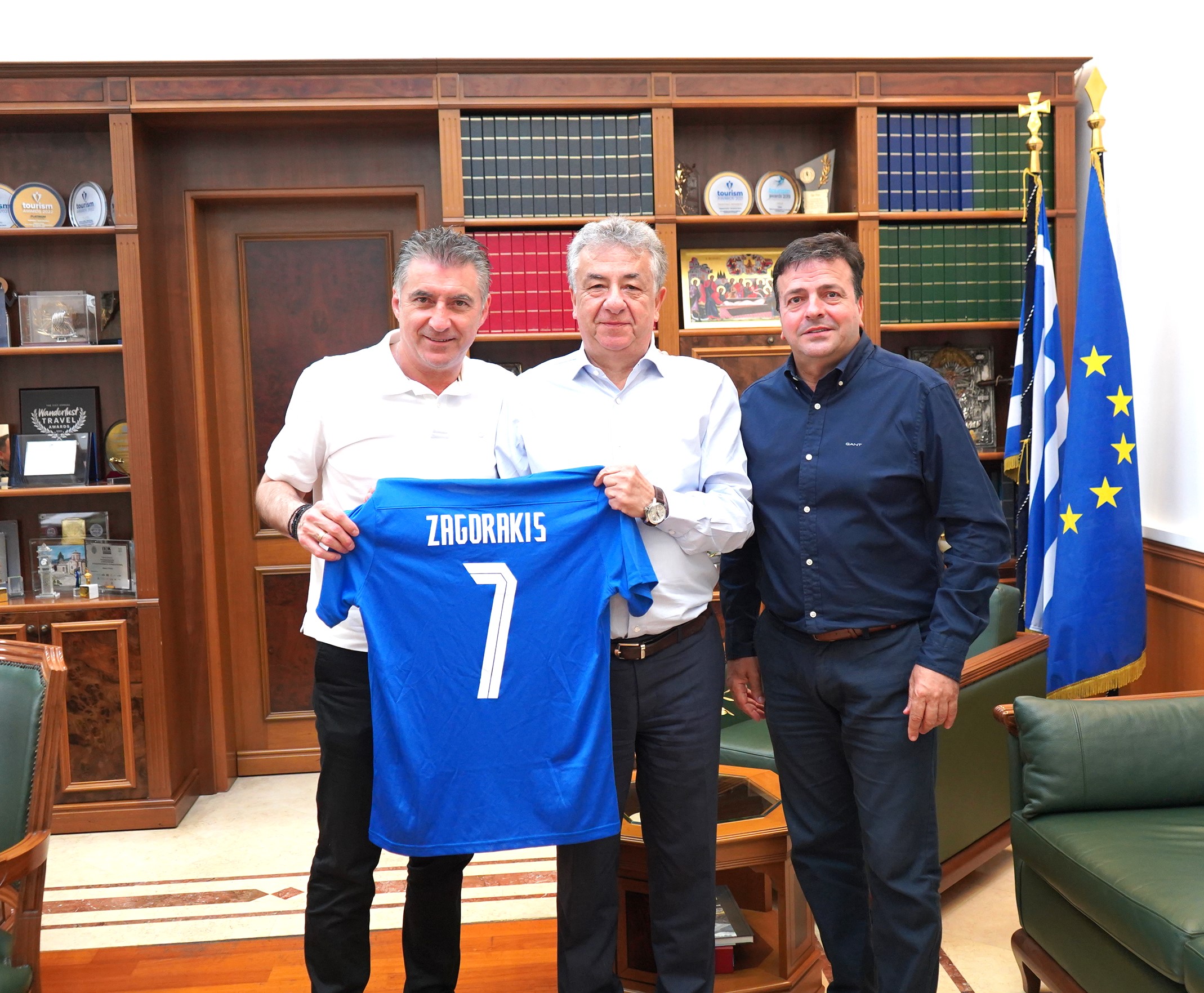 Στο τέλος της συνάντησης ο σπουδαίος ποδοσφαιριστής χάρισε στον Περιφερειάρχη την αθλητική φανέλα με το ν. 7 που φορούσε όταν έπαιζε στην εθνική ομάδα ποδοσφαίρου.