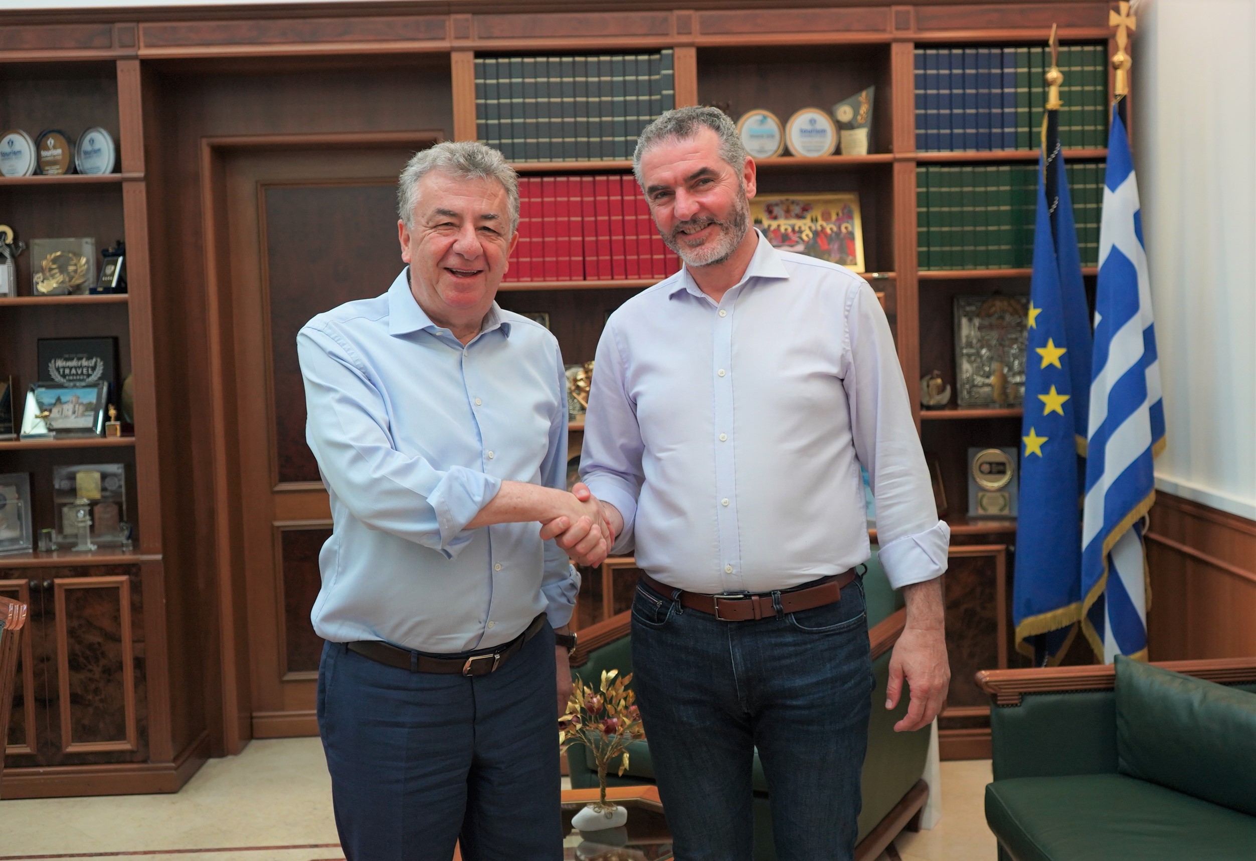 Ο νεοεκλεγμένος βουλευτής Ρεθύμνου Μανόλης Χνάρης επισκέφθηκε σήμερα τον Περιφερειάρχη Κρήτης Σταύρο Αρναουτάκη. Ο Περιφερειάρχης συνεχάρη τον κ. Χνάρη για την εκλογή του και ευχήθηκε η καλή συνεργασία που υπήρξε στο παρελθόν κατά την θητεία του ως Περιφερειακός Σύμβουλος αλλά και ως Αντιπεριφερειάρχης Πρωτογενή τομέα να συνεχιστεί προς όφελος της κοινωνίας, της ανάπτυξης και της προόδου της Κρήτης. Συγκινημένος ο κ. Χνάρης ευχαρίστησε θερμά τον Περιφερειάρχη, το Περιφερειακό Συμβούλιο για την παραγωγική συνεργασία, η οποία, όπως ανέφερε, θα συνεχιστεί και από την θέση του εκλεγμένου Βουλευτή Ρεθύμνου.