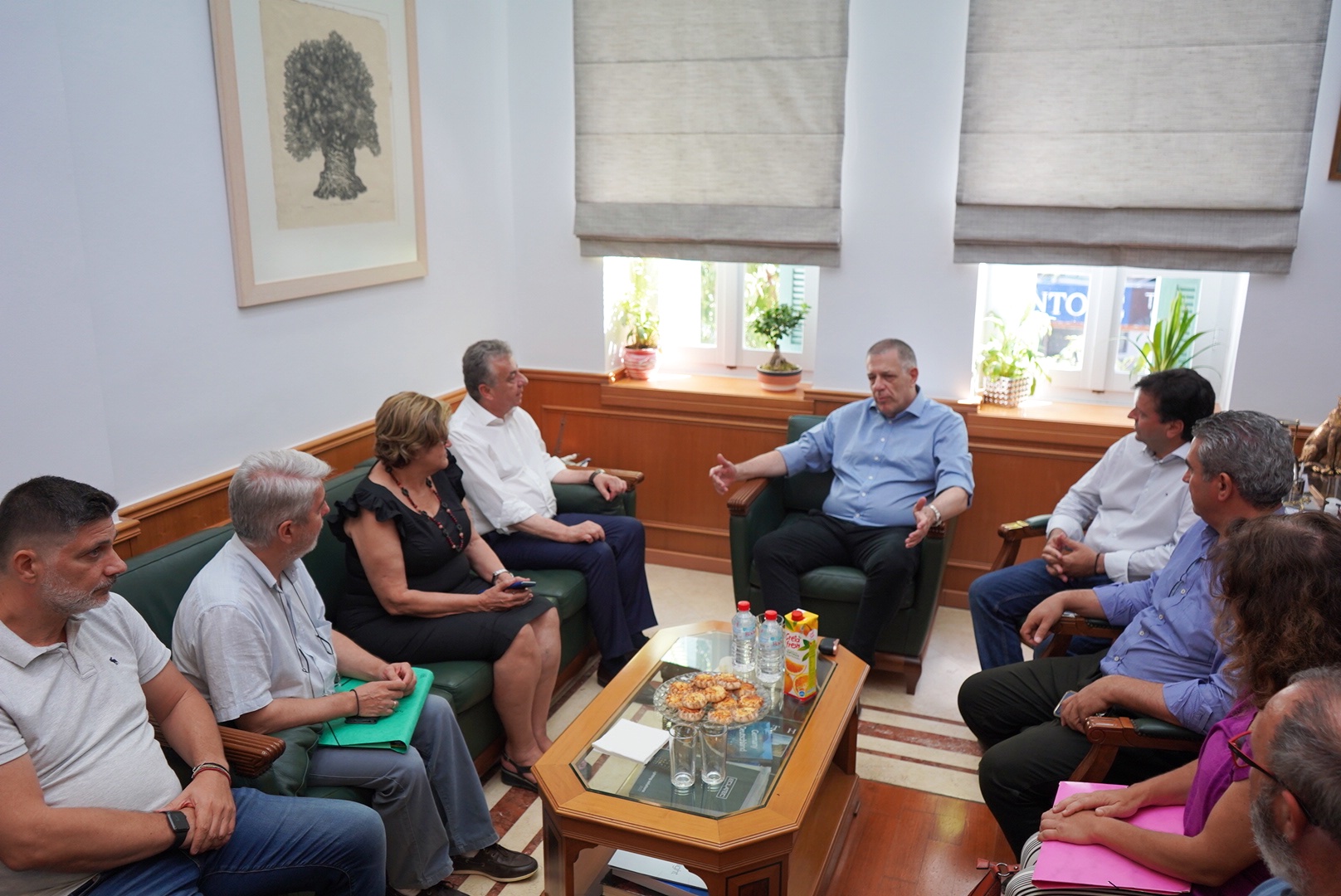 Στη συνάντηση στο γραφείο του Περιφερειάρχη παρουσία του Αντιπεριφερειάρχη Ηρακλείου Νίκου Συριγωνάκη και υπηρεσιακών παραγόντων της Περιφέρειας Κρήτης και του Υπουργείου Υποδομών συζητήθηκαν όλα τα μεγάλα έργα που είναι σε εξέλιξη στο νησί.