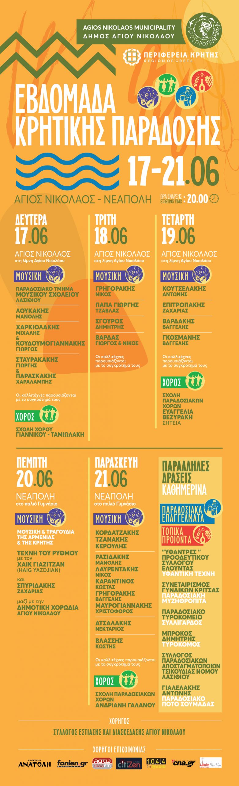 Ο Δήμος Αγίου Νικολάου με την στήριξη της Περιφέρεια Κρήτης, πραγματοποιεί την «Εβδομάδα Κρητικής Παράδοσης» έως 21 Ιουνίου στον Αγ. Νικόλαο.