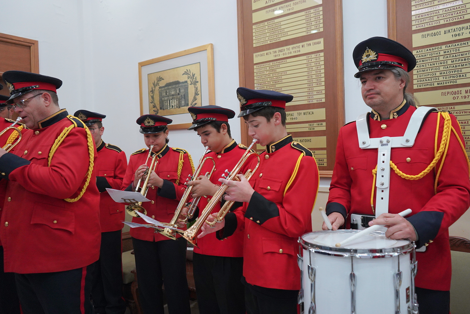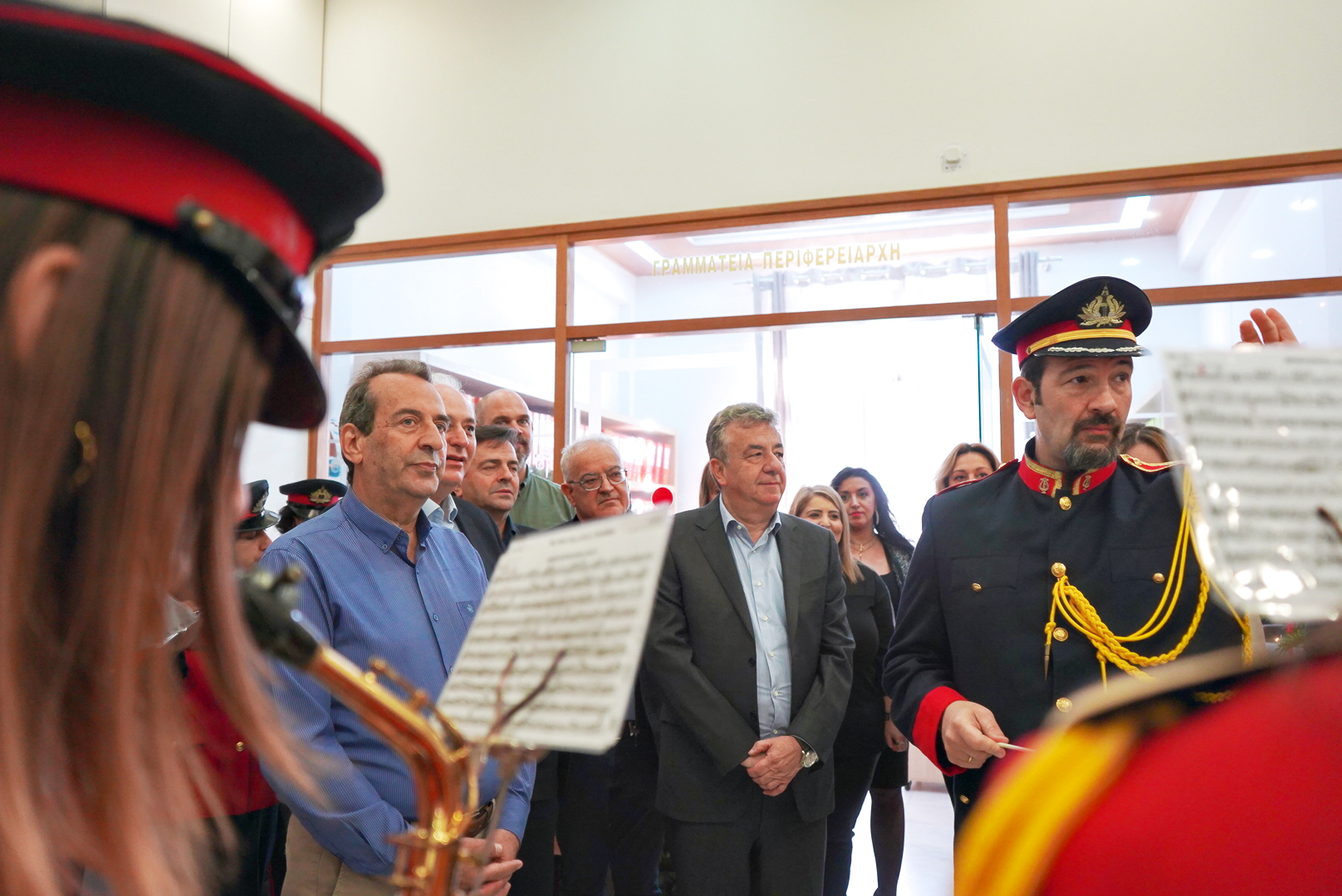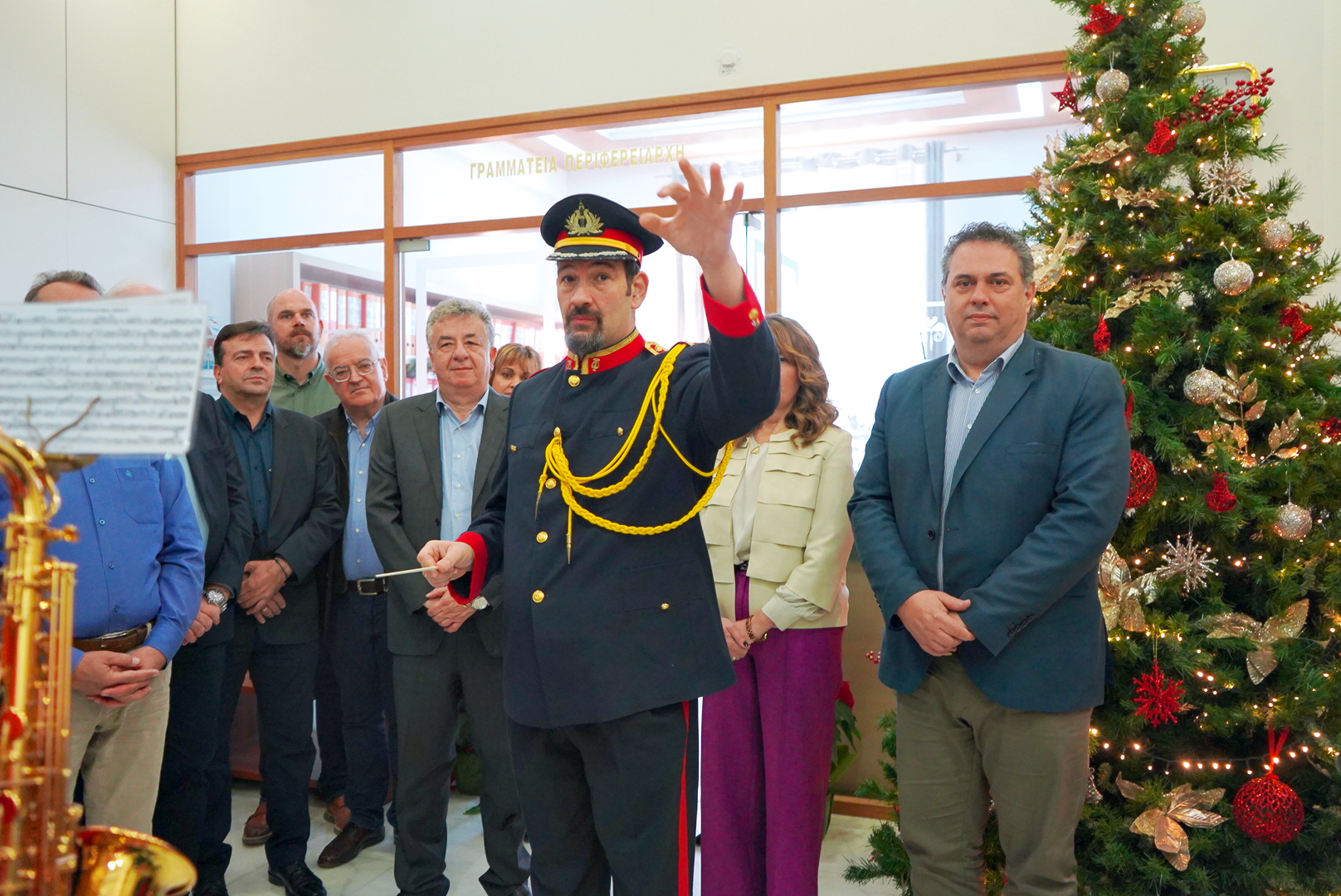 Με κάλαντα και χριστουγεννιάτικα τραγούδια ευχήθηκε η φιλαρμονική του Δήμου Ηρακλείου σήμερα στο πρωί στον Περιφερειάρχη Κρήτης, τον Πρόεδρο του Περιφερειακού Συμβουλίου, Αντιπεριφερειάρχες, μέλη του Περιφερειακού Συμβουλίου και εργαζόμενους της Περιφέρειας Κρήτης.