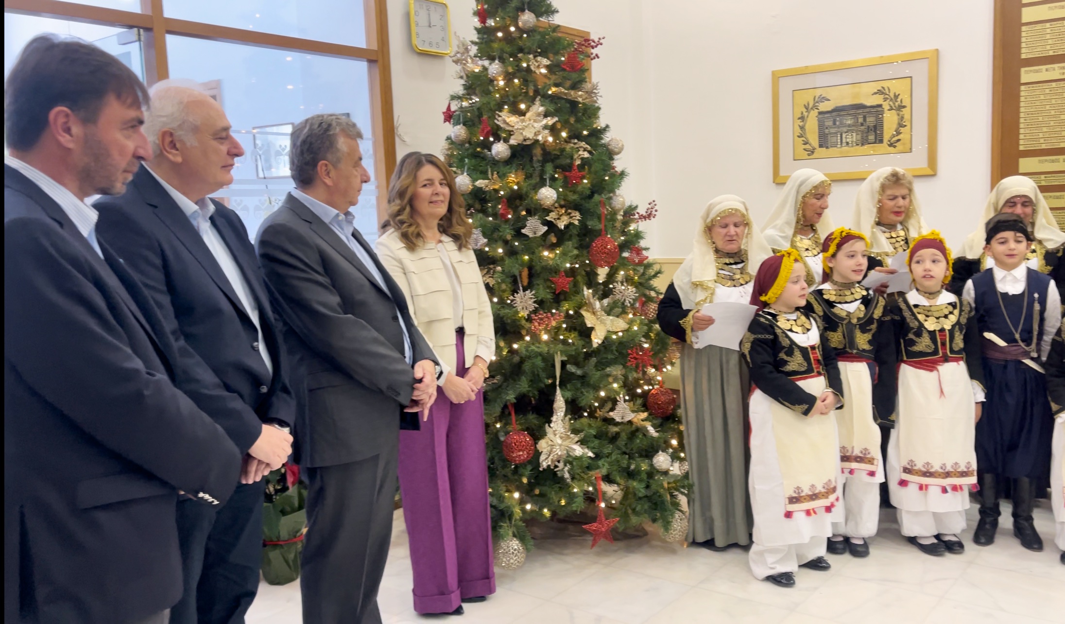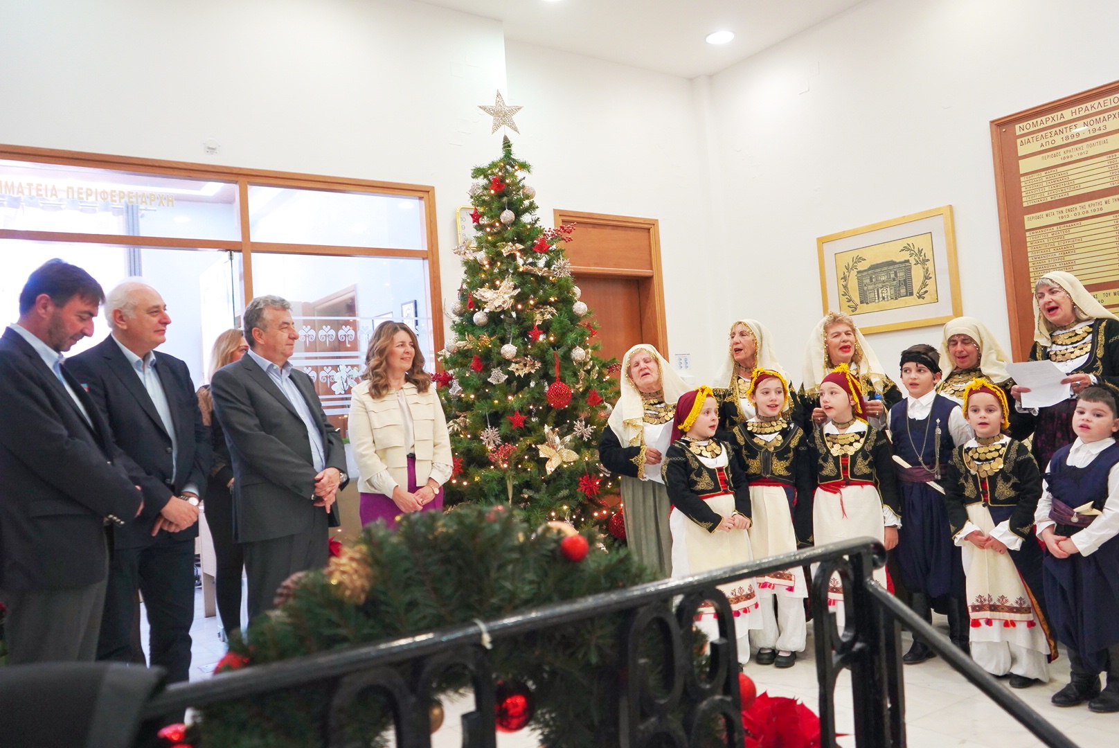 Με παραδοσιακό χρώμα και φορεσιές η χορωδία από το Λύκειο Ελληνίδων έψαλε τα κρητικά κάλαντα, αποτελούμενη από κυρίες και μικρά παιδιά του Παραρτήματος του Λυκείου Ελληνίδων Ηρακλείου. Ο Περιφερειάρχης Κρήτης ευχήθηκε καλή πρόοδο στα παιδιά και να συνεχίσουν να στηρίζουν τον πολιτισμό και την παράδοση της Κρήτης.