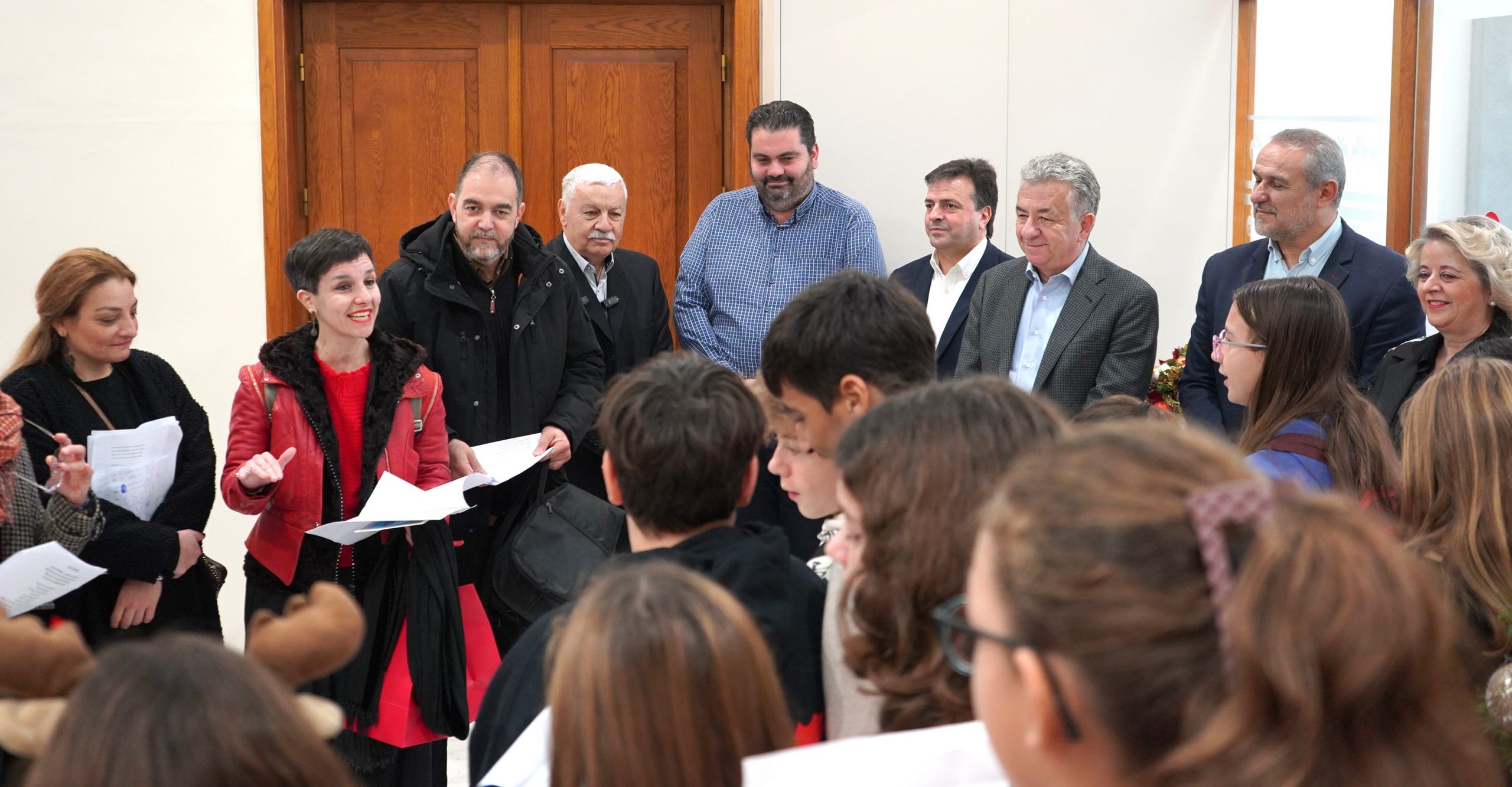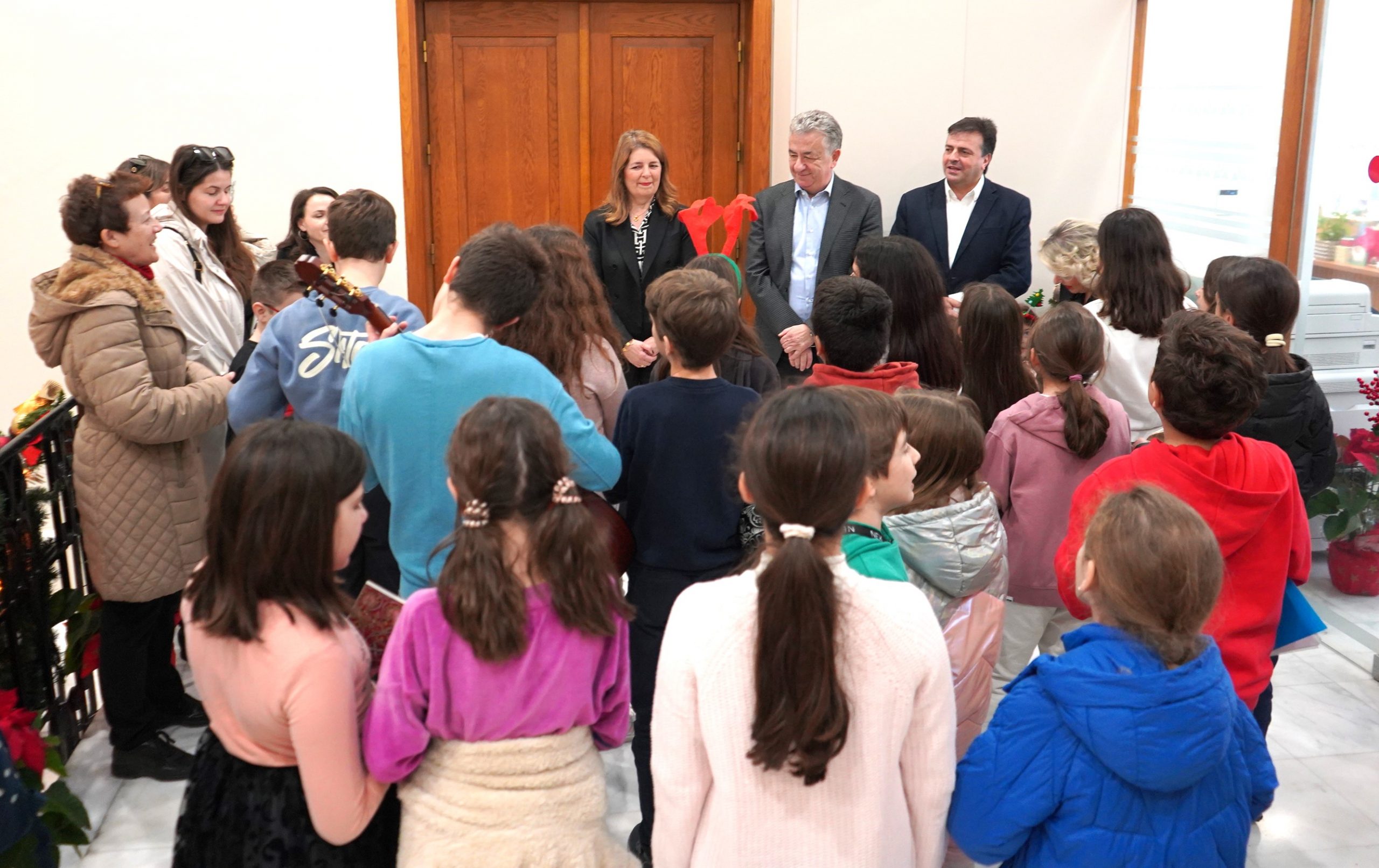 Σε εορταστικό κλίμα, τα παραδοσιακά Χριστουγεννιάτικα κάλαντα έψαλαν σήμερα στην Περιφέρεια μαθητές, μαθήτριες αλλά και εκπρόσωποι φορέων.