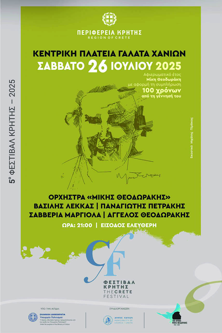 Συγκεκριμένα το Σάββατο 26 Ιουλίου 2025 θα παρουσιάσει μία μοναδική συναυλία, για τα 100 χρόνια από τη γέννηση του Μίκη Θεοδωράκη με την Ανεξάρτητη Λαϊκή Ορχήστρα «Μίκης Θεοδωράκης» και τους εκλεκτούς καλλιτέχνες Βασίλη Λέκκα, Παναγιώτη Πετράκη, Σαββέρια Μαργιολά, Άγγελο Θεοδωράκη.