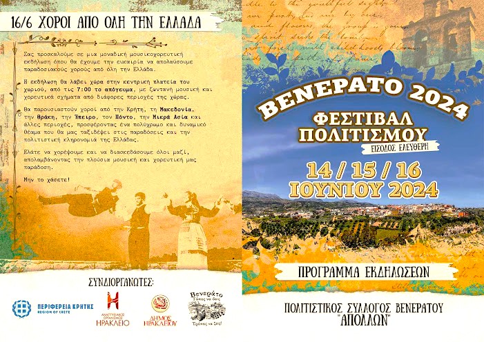 Φεστιβάλ πολιτισμού «Βενεράτο 2024» με την στήριξη της Περιφέρειας Κρήτης
