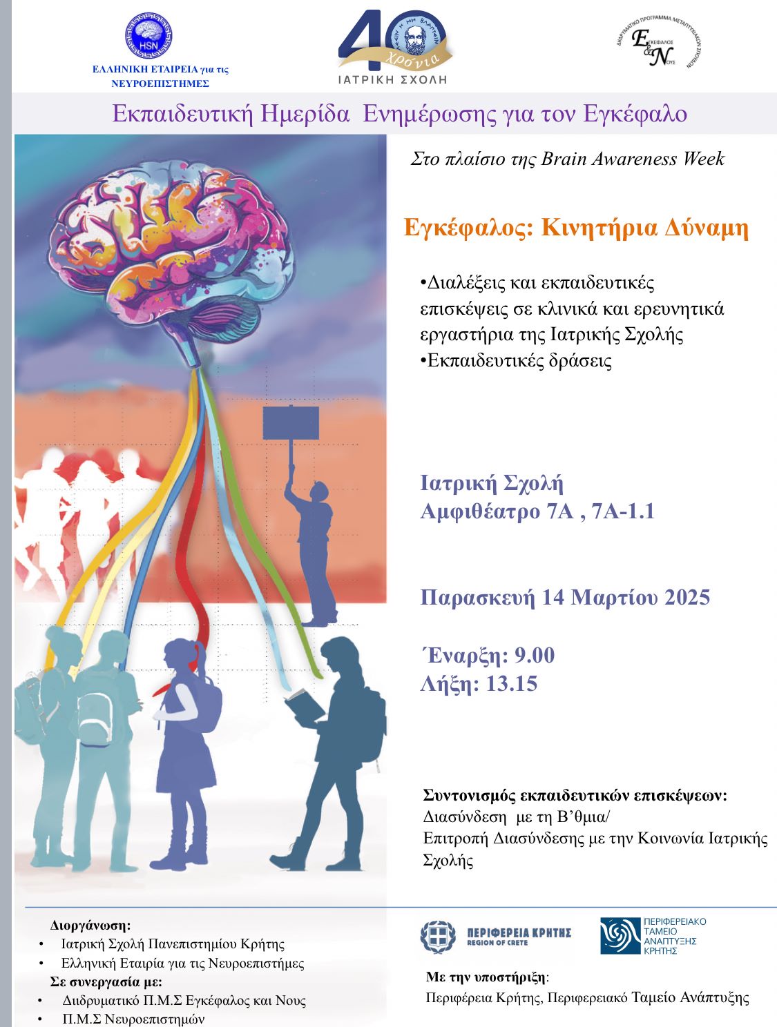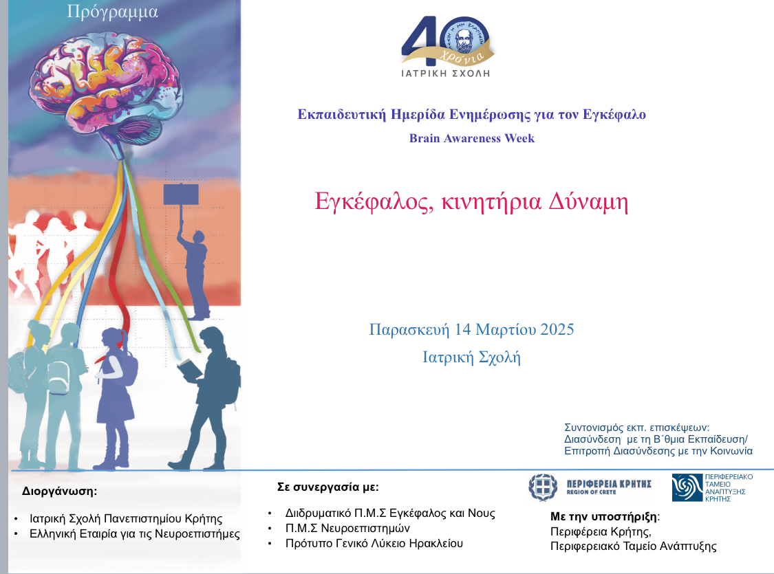 Hμέρα Ενημέρωσης για τον Εγκέφαλο (Brain Awareness Week) με την υποστήριξη της Περιφέρειας Κρήτης