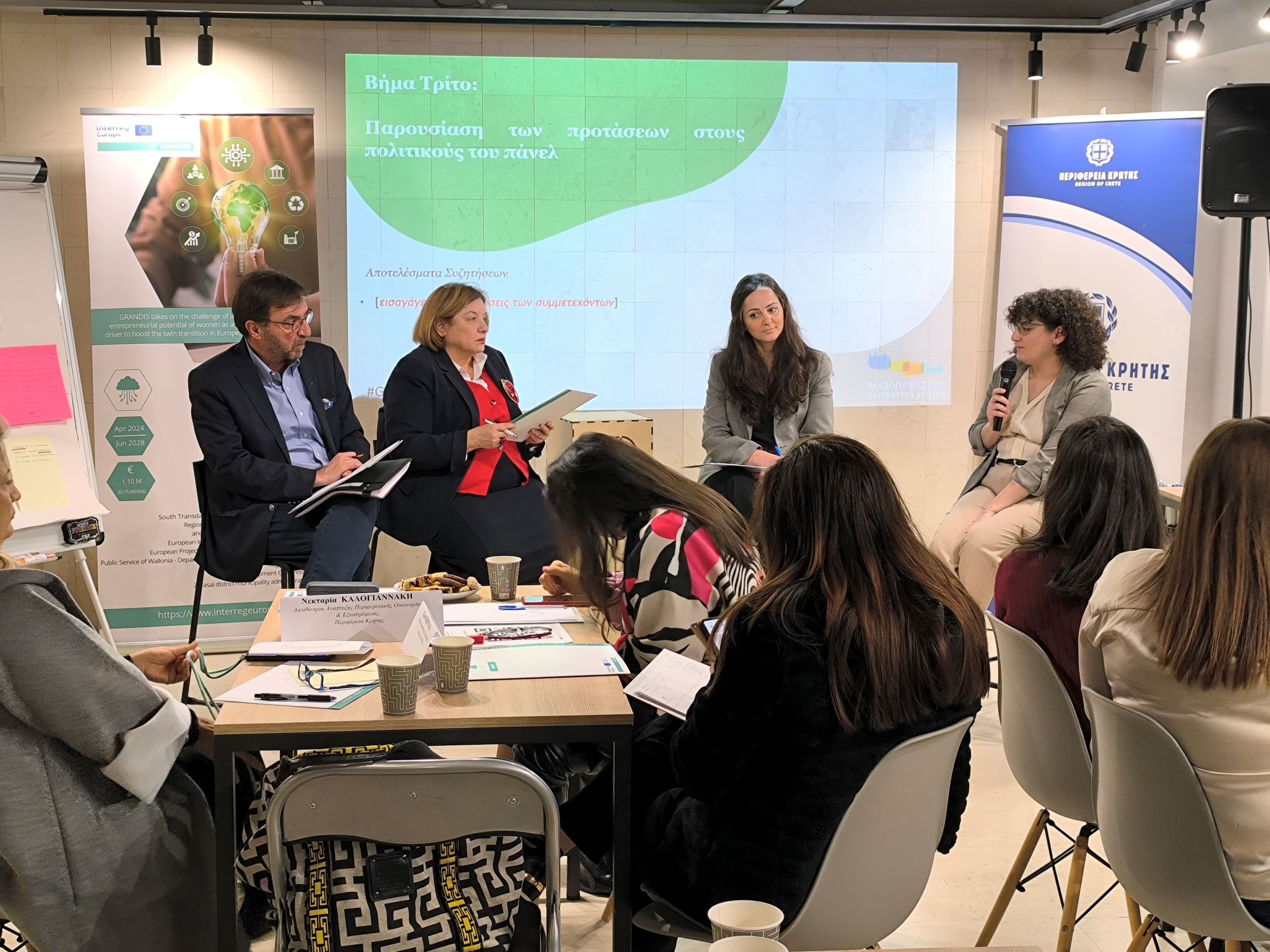 Το Εργαστήριο προσέλκυσε μεγάλο ενδιαφέρον καθώς συμμετείχαν γυναίκες επιχειρηματίες, ειδικοί στον τομέα της πράσινης ανάπτυξης και της ψηφιακής καινοτομίας και αυτοδιοικητικοί. Οι συμμετέχουσες γυναίκες σε ομάδες συζήτησης, εξέφρασαν απόψεις για τα εμπόδια που αντιμετωπίζουν οι γυναίκες στο ‘επιχειρείν’, ιδιαίτερα σε περιόδους ψηφιακής και περιβαλλοντικής αλλαγής και κατέθεσαν προτάσεις.