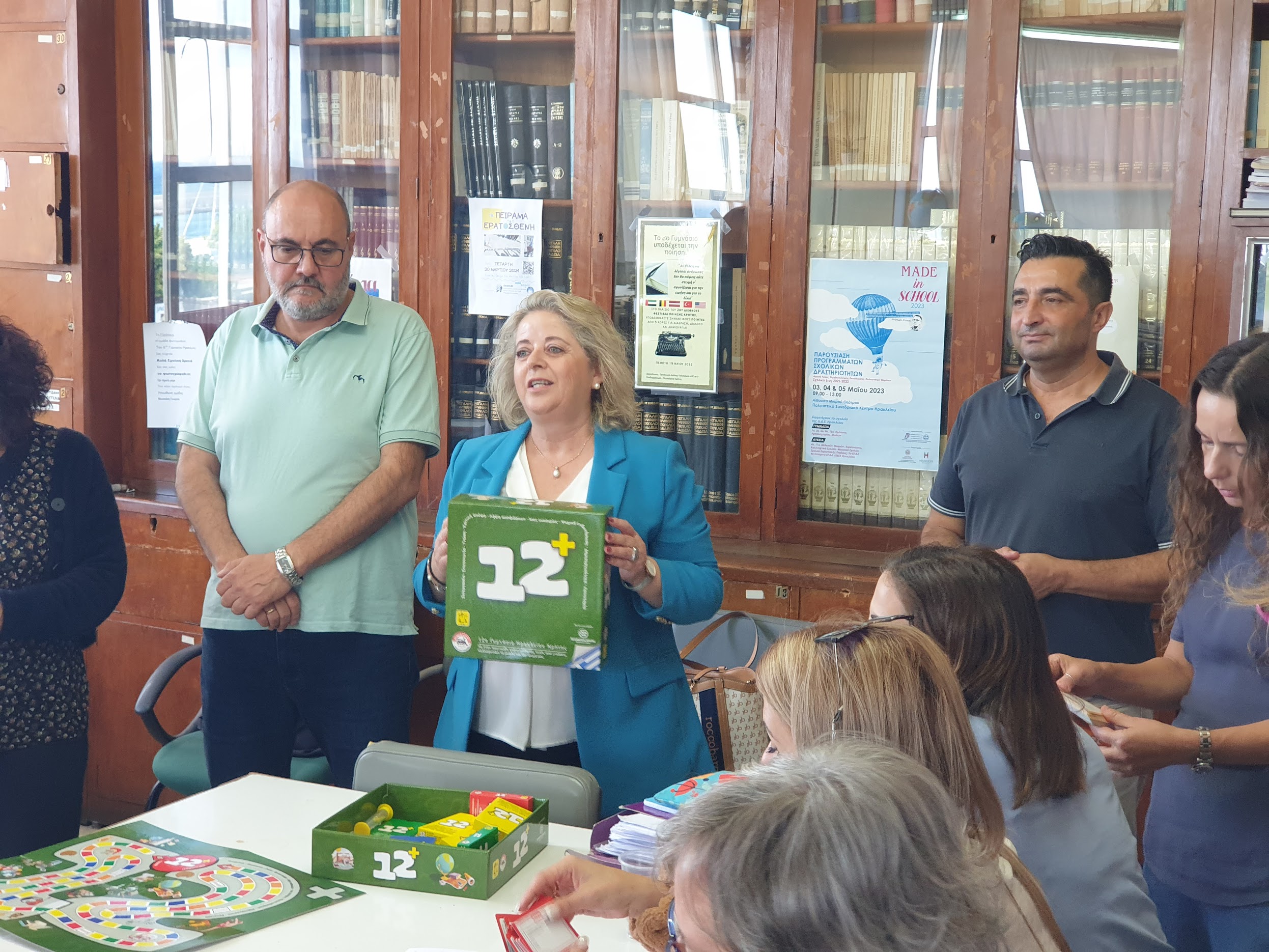 Η κα. Μαράκη-Μπελαδάκη και ο κ. Παυλίδης παρέδωσαν από ένα επιτραπέζιο παιχνίδι “12+” σε κάθε σχολείο, ενισχύοντας περαιτέρω τη δέσμευση της Περιφέρειας Κρήτης για την υποστήριξη εκπαιδευτικών καινοτομιών που εμπλουτίζουν τη μαθησιακή εμπειρία.