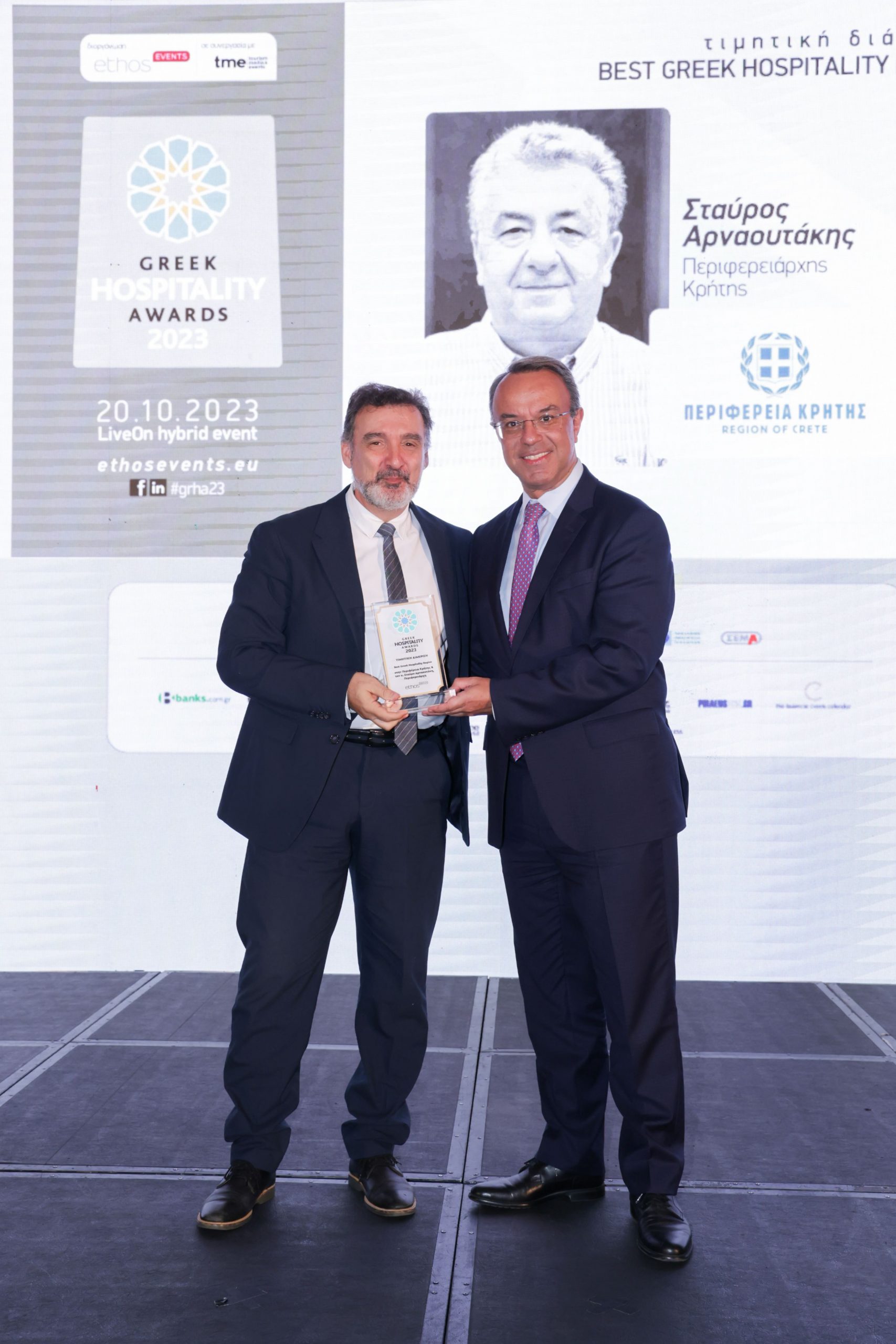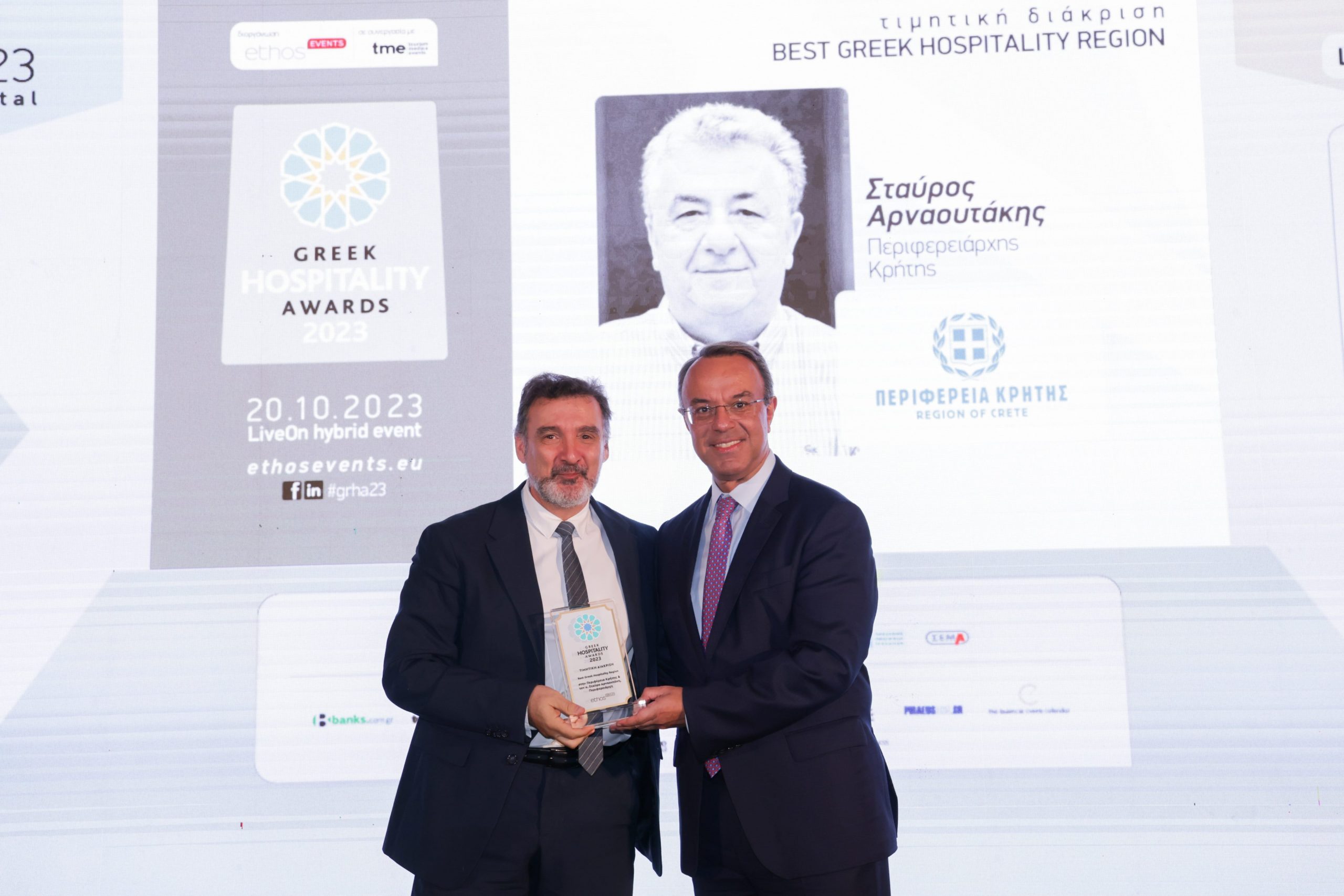 Η πιο φιλόξενη Περιφέρεια της Ελλάδας αναδείχθηκε η Περιφέρεια Κρήτης κατά την τελετή απονομής των βραβείων «Greek Hospitality Awards 2023».