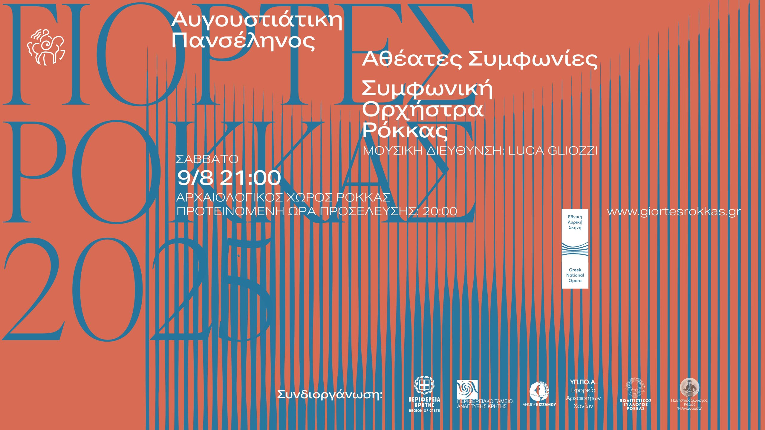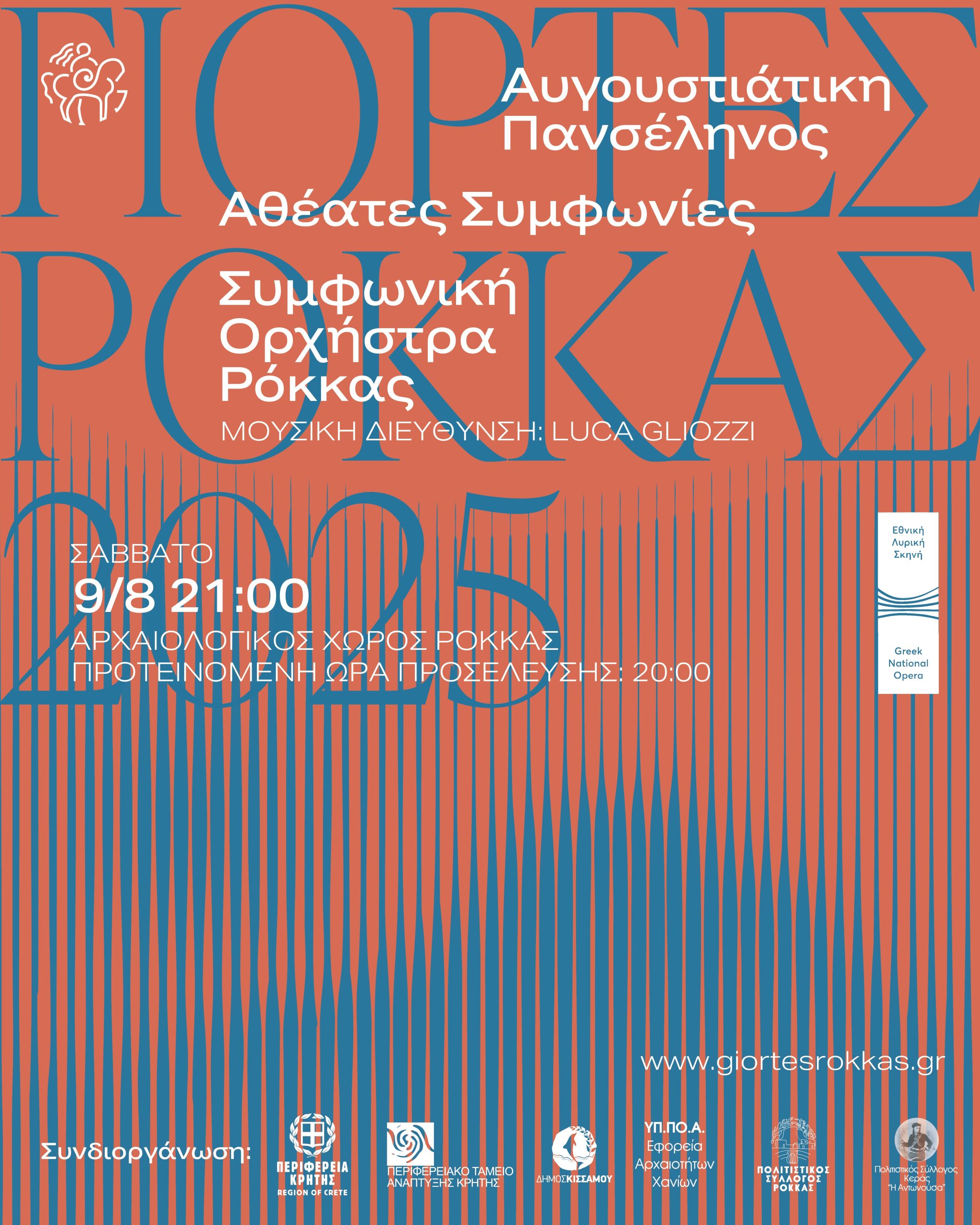 Κάτω από τον έναστρο ουρανό της Κισσάμου και λουσμένοι από το φως της Αυγουστιάτικης Πανσελήνου, δεκάδες μουσικοί και ο μαέστρος Luca Gliozzi θα προσφέρουν ένα μοναδικό συμφωνικό ταξίδι, στον φυσικό «καθρέφτη» του Αρχαιολογικού Χώρου Ρόκκας.