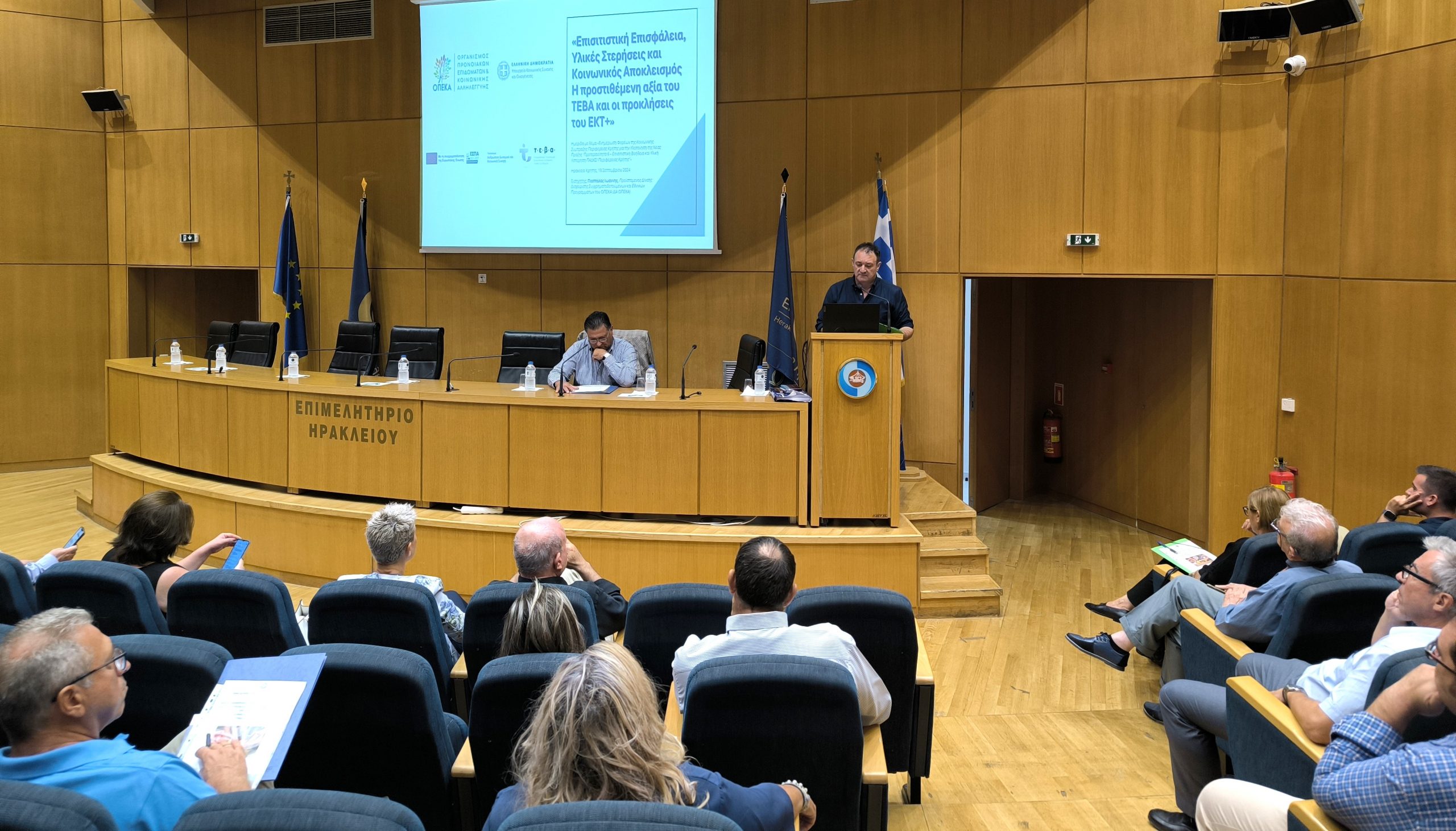 Η Περιφέρεια Κρήτης-Γενική Διεύθυνση Δημόσιας Υγείας και Κοινωνικής Μέριμνας πραγματοποιεί ενημερωτική ημερίδα με θέμα «Ενημέρωση φορέων Κοινωνικής Σύμπραξης Περιφέρειας Κρήτης για την υλοποίηση Νέας Πράξης-Προτεραιότητα 6 «Επισιτιστική βοήθεια και υλική υστέρηση/ΠΑΔΚΣ Περιφέρειας Κρήτης». Η ημερίδα είναι σε εξέλιξη στο Επιμελητήριο Ηρακλείου και συμμετέχουν Δήμαρχοι, εκπρόσωποι Δημάρχων, Αντιπεριφερειάρχες, Περιφερειακοί Σύμβουλοι, οι εκπρόσωποι των υπηρεσιών που θα υλοποιήσουν το πρόγραμμα.