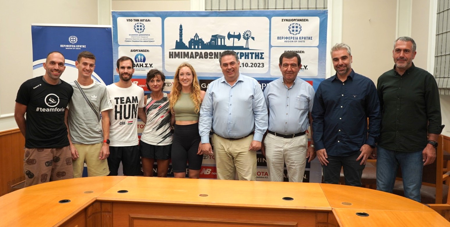 Σήμερα στο κτίριο της Περιφέρειας Κρήτης πραγματοποιήθηκε συνέντευξη τύπου στην οποία συμμετείχαν: ο Αντιπεριφερειάρχης Αθλητισμού, Πρόληψης και Κινητών Μονάδων Γιώργος Πιτσούλης, ο αντιδήμαρχος Μινώα Πεδιάδας Κώστας Αραβιάκης, ο πρόεδρος του Αθλητικού Συλλόγου Υγείας Αρκαλοχωρίου Γιώργος Αλεβυζάκης και οι αθλητές Csere Gaspar από την Ουγγαρία, Lysanne Wilkens από την Ολλανδία, Mateusz Kaczor από την Πολωνία, Χριστόφορος Πρωτόπαππας από την Κύπρο και Σόνια Τσεκίνη από το Άργος.