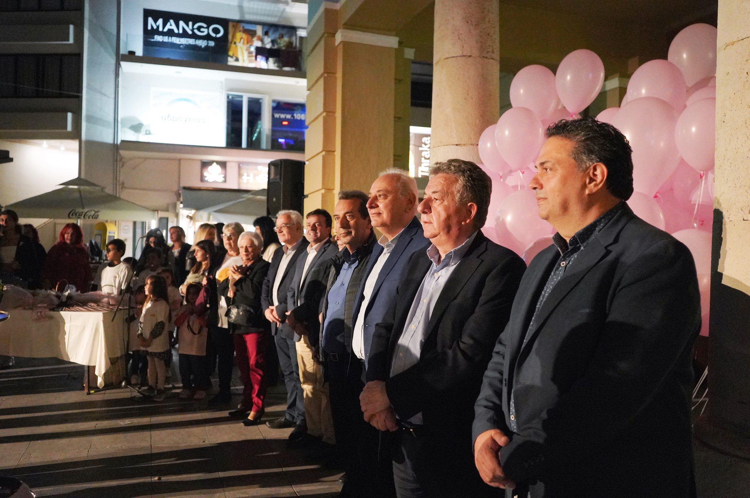 Τα καλλιτεχνικά δρώμενα ευαισθητοποίησης εντυπωσίασαν τους εκατοντάδες παραβρισκόμενους θεατές, και σε αυτά συμμετείχαν, γυναίκες αλλά και παιδιά με καλλιτεχνικές δημιουργίες. Ακολούθησε φωταγώγηση του κτηρίου της Περιφέρειας στα χρώματα του “ροζ” και το άναμμα του βωμού της ελπίδας.