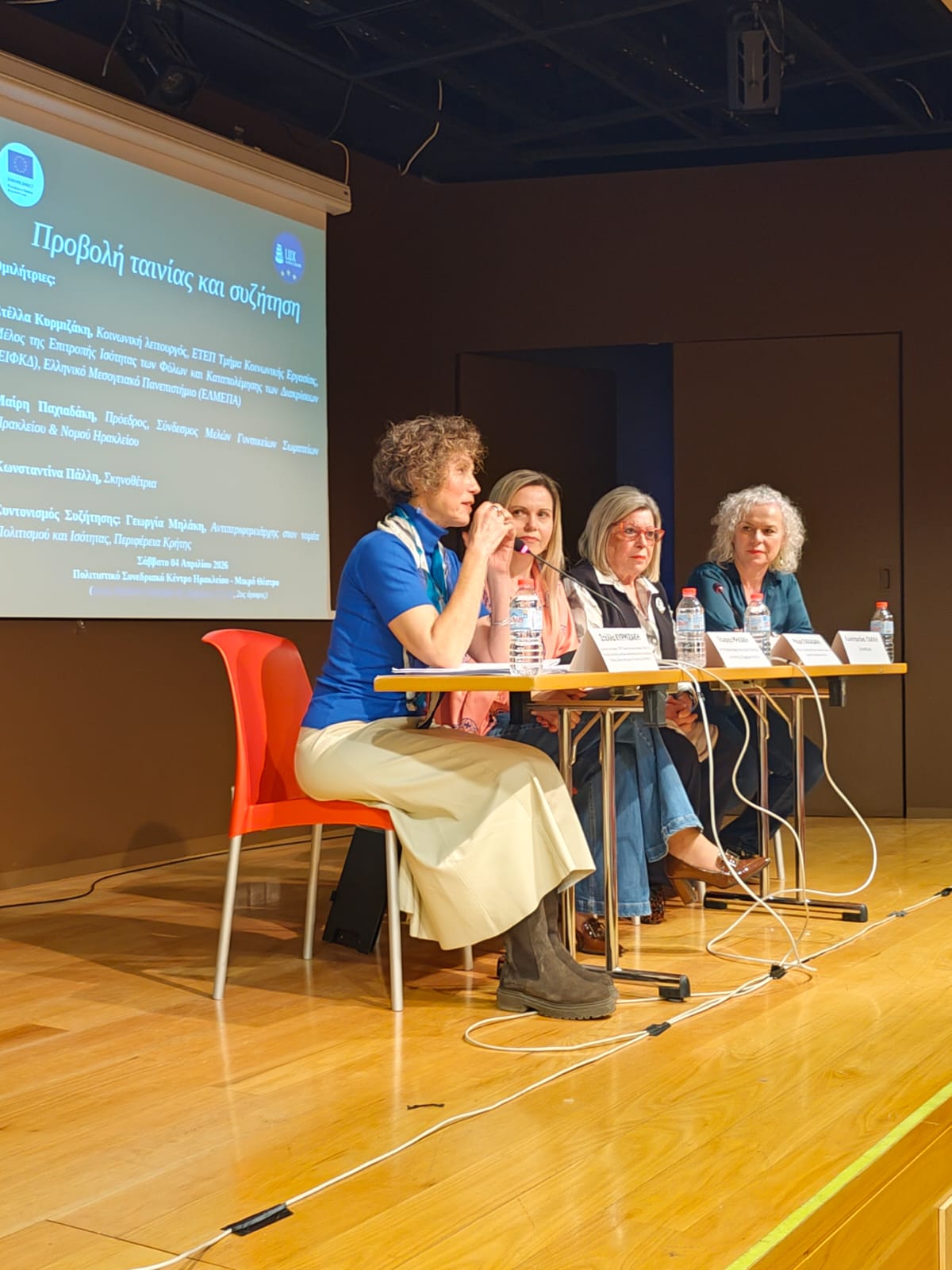 Ιδιαίτερα ζωντανός και ουσιαστικός ήταν ο διάλογος που ακολούθησε της προβολής, με τη συμμετοχή ομιλητών, οι οποίοι προσέγγισαν την ταινία μέσα από διαφορετικές οπτικές. Στο πάνελ συμμετείχαν η σκηνοθέτρια Κωνσταντίνα Πάλλη, η κοινωνική λειτουργός Στέλλα Κυρμιζάκη, μέλος της Επιτροπής Ισότητας των Φύλων και Καταπολέμησης των Διακρίσεων του Ελληνικό Μεσογειακό Πανεπιστήμιο, καθώς και η πρόεδρος του Συνδέσμου Μελών Γυναικείων Σωματείων Ηρακλείου & Νομού Ηρακλείου Μαίρη Παχιαδάκη.