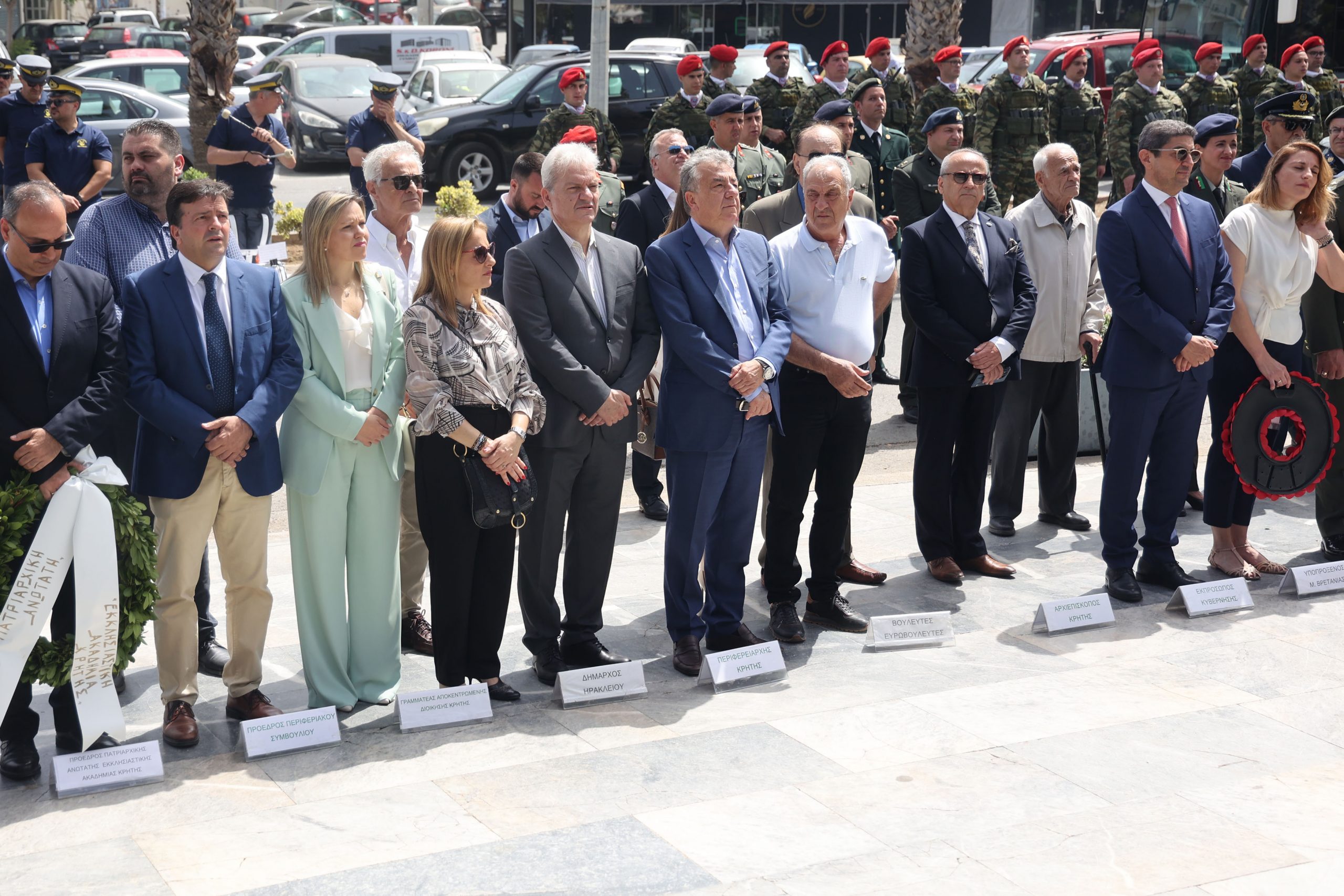 Στην επετειακή εκδήλωση στο Μνημείο της Μάχης της Κρήτης συμμετείχαν οι Αντιπεριφερειάρχες Νίκος Συριγωνάκης, Γεωργία Μηλάκη, Σταύρος Τζεδάκης, Περιφερειακοί, Δημοτικοί Σύμβουλοι, εκπρόσωποι φορέων.