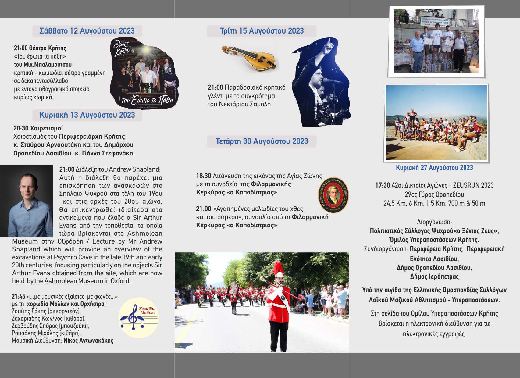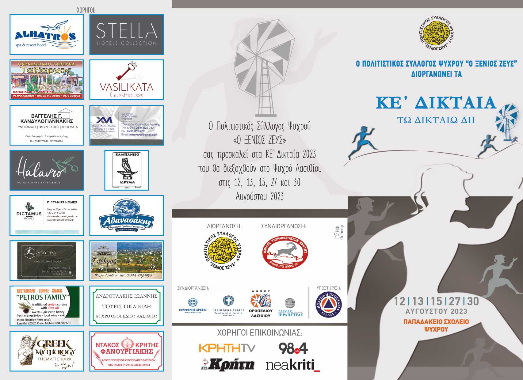 17:30 Θα πραγματοποιηθούν οι 42οι Δικταίοι Αγώνες – ZEUSRUN 2023. Ο 29ος Γύρος Οροπεδίου 24.5 Km & 6 Km & 1.5 Km & 700m & 50m.