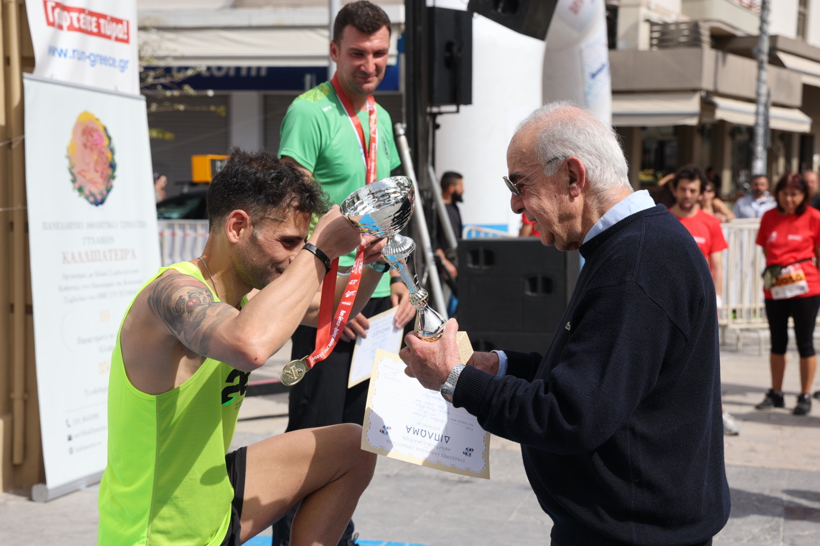 Ο Δήμαρχος Ηρακλείου Βασίλης Λαμπρινός που έδωσε την εκκίνηση στο δεύτερο γκρουπ των 5 χιλ. δήλωσε: «Στον Δήμο Ηρακλείου στηρίζουμε σταθερά το Run Greece με τις υπηρεσίες και το προσωπικό μας διότι πρόκειται για ένα αγώνα μαζικού αθλητισμού όπου η συμμετοχή έχει μεγαλύτερη σημασία από τη νίκη. Ειδικά η φετινή διοργάνωση, η 10η που διεξάγεται στην πόλη μας, επέστρεψε στο κέντρο του Ηρακλείου και μας έδωσε την επιπλέον ικανοποίηση να δούμε χιλιάδες ανθρώπους κάθε ηλικίας να γεμίζουν τους νέους πεζόδρομους».