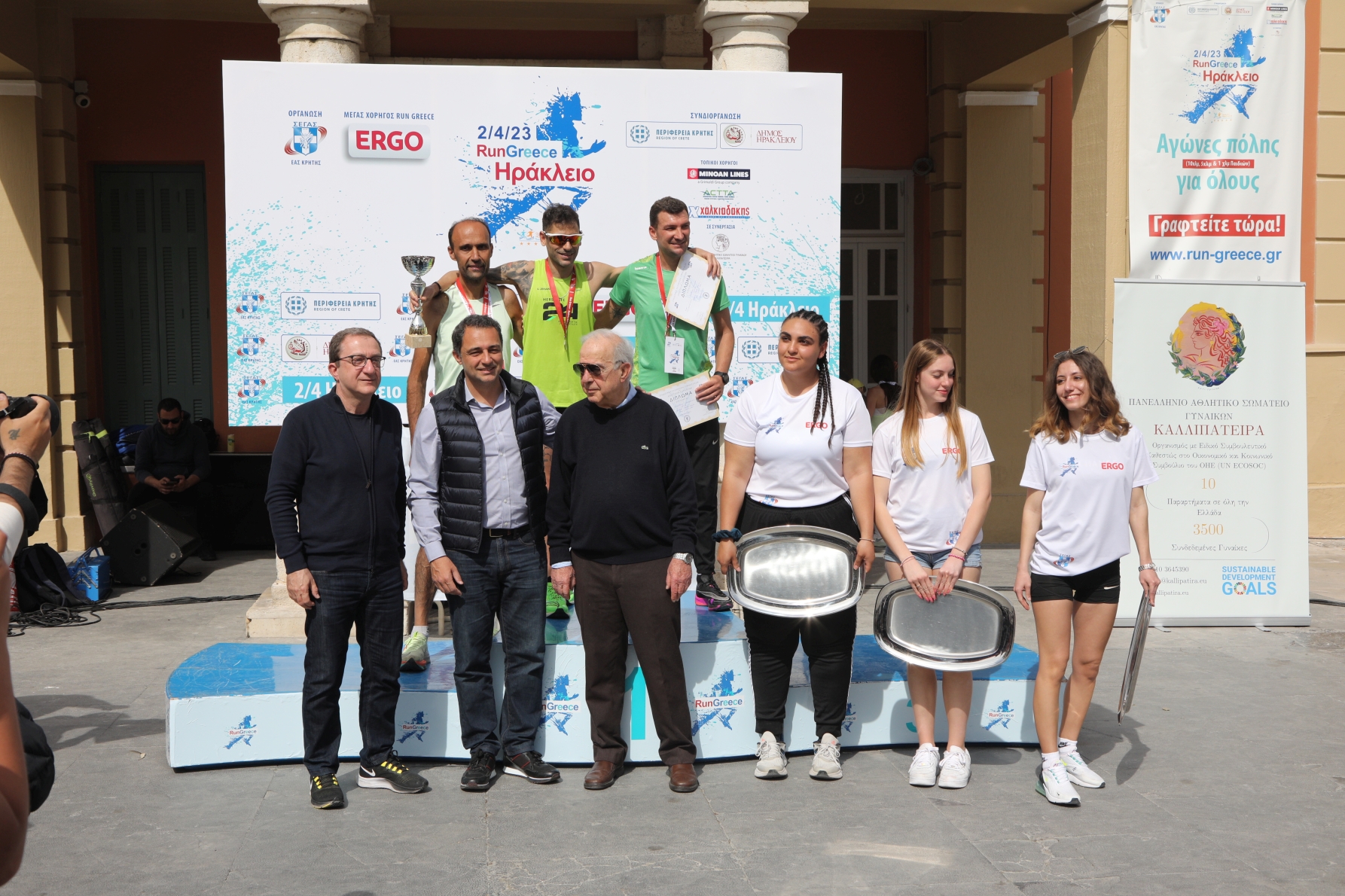 Τη γιορτή του μαζικού αθλητισμού «Run Grecce-Ηράκλειο» που προάγει το «ευ αγωνίζεσθαι», τον εθελοντισμό και προβάλλει την Κρήτη στην Ελλάδα και στο εξωτερικό διοργανώνει ο Σ.Ε.Γ.Α.Σ. – Ε.Α.Σ. Σ.Ε.ΓΑ.Σ. Κρήτης με συνδιοργανωτές την Περιφέρεια Κρήτης και το Δήμο Ηρακλείου, μεγάλο χορηγό την ERGO Ασφαλιστική και τοπικούς χορηγούς τις Μινωικές Γραμμές, το Σύνδεσμο Τουριστικών και Ταξιδιωτικών Γραφείων Κρήτης, τα Super Market Χαλκιαδάκης, με τη συνεργασία του πανελλήνιου αθλητικού σωματείου Γυναικών «Καλλιπάτειρα».