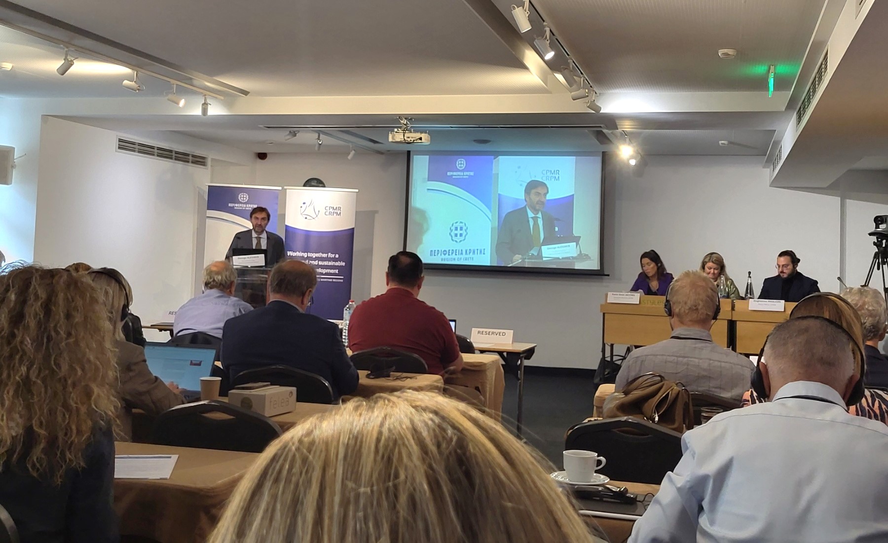 Τους συνέδρους καλωσόρισε ο Περιφερειακός Σύμβουλος αρμόδιος για τα Ευρωπαϊκά θέματα  και Αντιπρόεδρος της CRPM Γιώργος Αλεξάκης, ο οποίος περιέγραψε την ενεργή δραστηριότητα της Περιφέρειας Κρήτης στην κατεύθυνση της πράσινης μετάβασης και της απανθρακοποίησης, μέσα από μια σειρά πρωτοβουλιών και έργων για την προώθηση των Ανανεώσιμων Πηγών Ενέργειας.