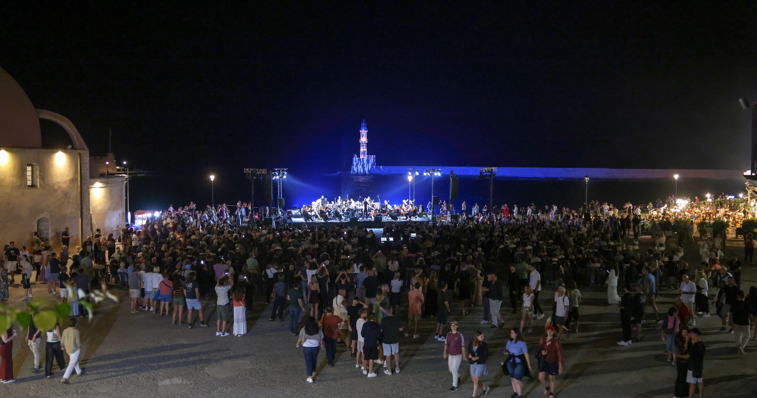 Χιλιάδες πολίτες και επισκέπτες της Κρήτης κατέκλυσαν το Ενετικό λιμάνι Χανίων και το Ενετικό λιμάνι Ηρακλείου σε δύο διαδοχικές συναυλίες  χειροκροτώντας θερμά τους μουσικούς της Κρατικής Ορχήστρας Αθηνών(ΚΟΑ). Οι συναυλίες ήταν αφιερωμένες στον Μίκη Θεοδωράκη, στο πλαίσιο του αφιερωματικού έτους για τα 100 χρόνια από τη γέννησή του και αυτές ήταν ο επίλογος για φέτος του επιτυχημένου θεσμού του φεστιβάλ Κρήτης της Περιφέρειας.